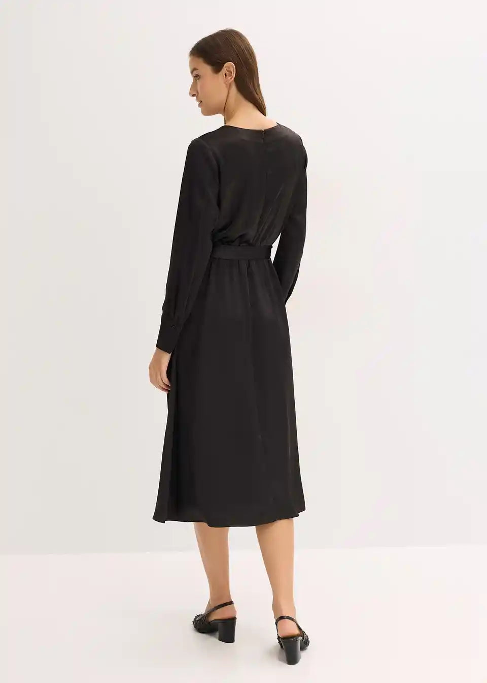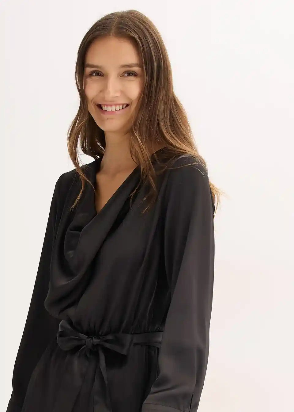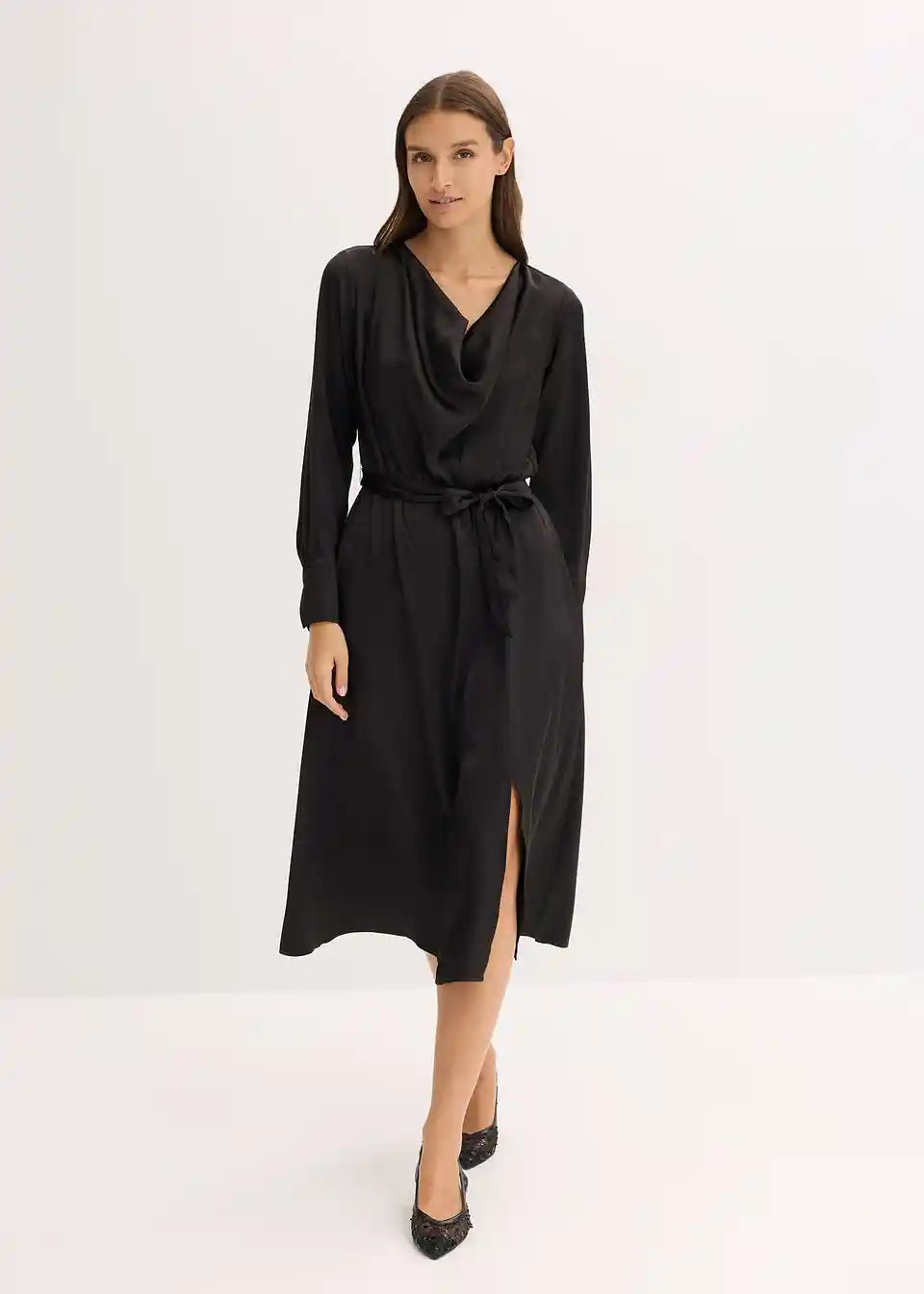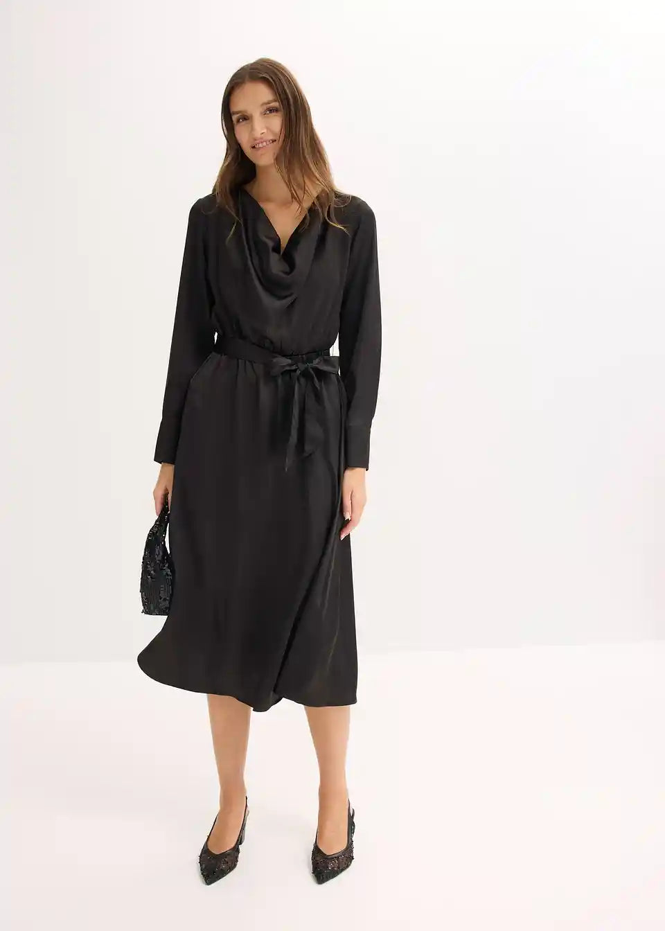 Lagano lepršava, blago raširena satenska haljina s pojasom za vezanje