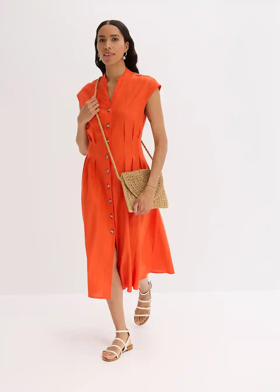 Midi haljina od laganog materijala s udjelom lana