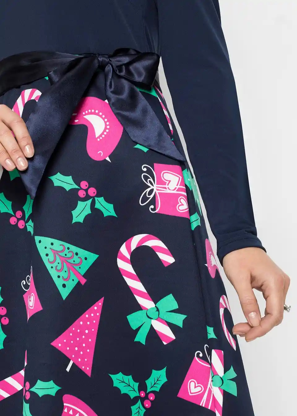 Razigrana haljina s vezanim pojasom i slatkim božićnim motivom