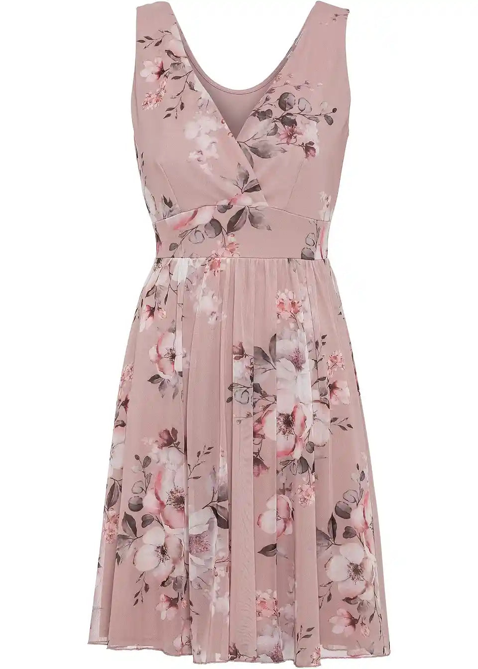 Ženstvena haljina od BODYFLIRT-a. Haljina od Mesha ima duboki dekolte. Duljina u vel. 36/38 cca 94 cm.