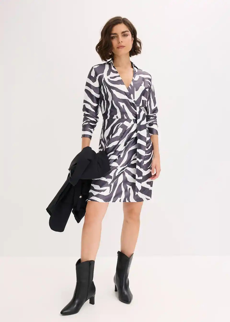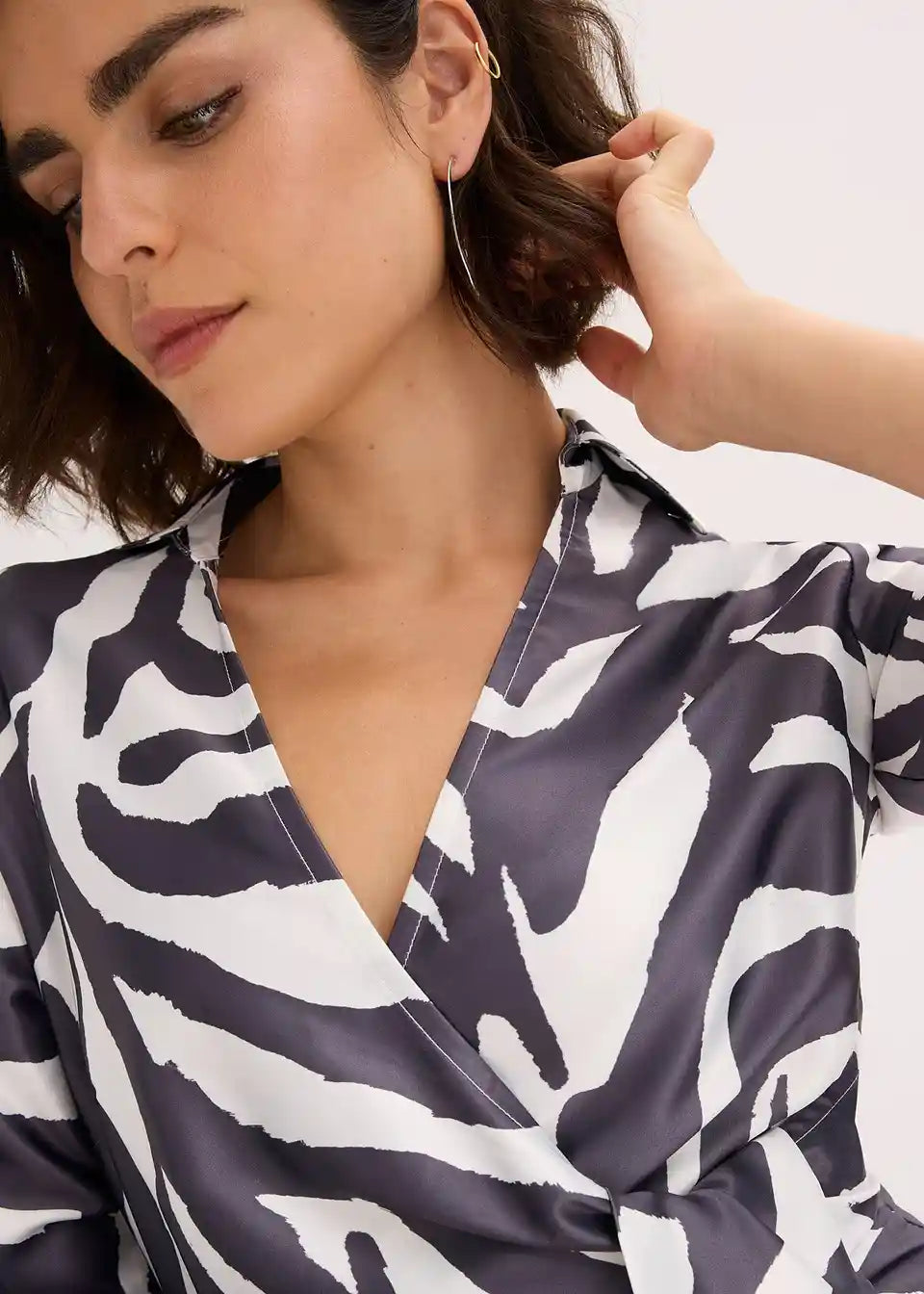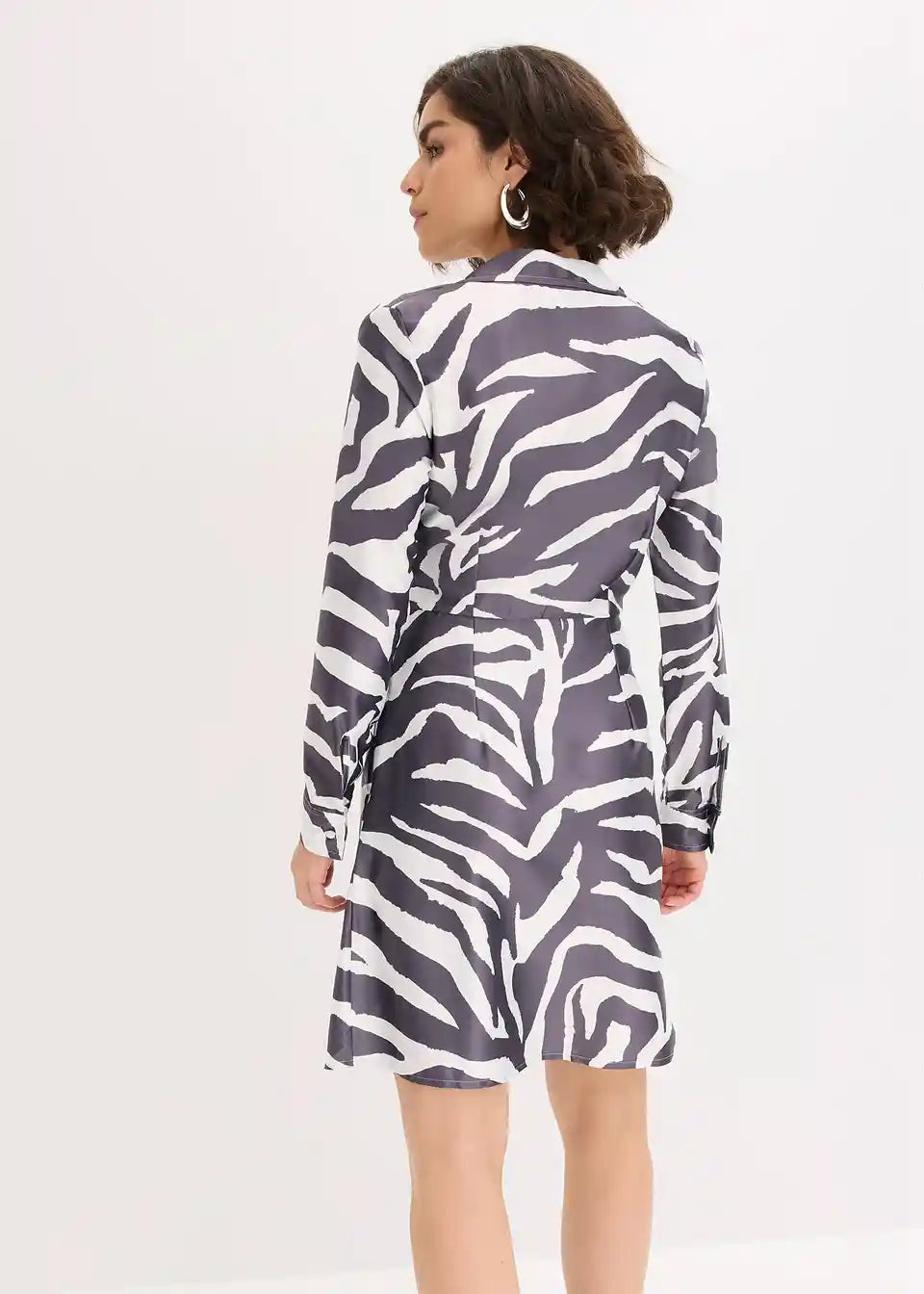 ženstvena omotana haljina od lepršavog satena s modernim Animal printom