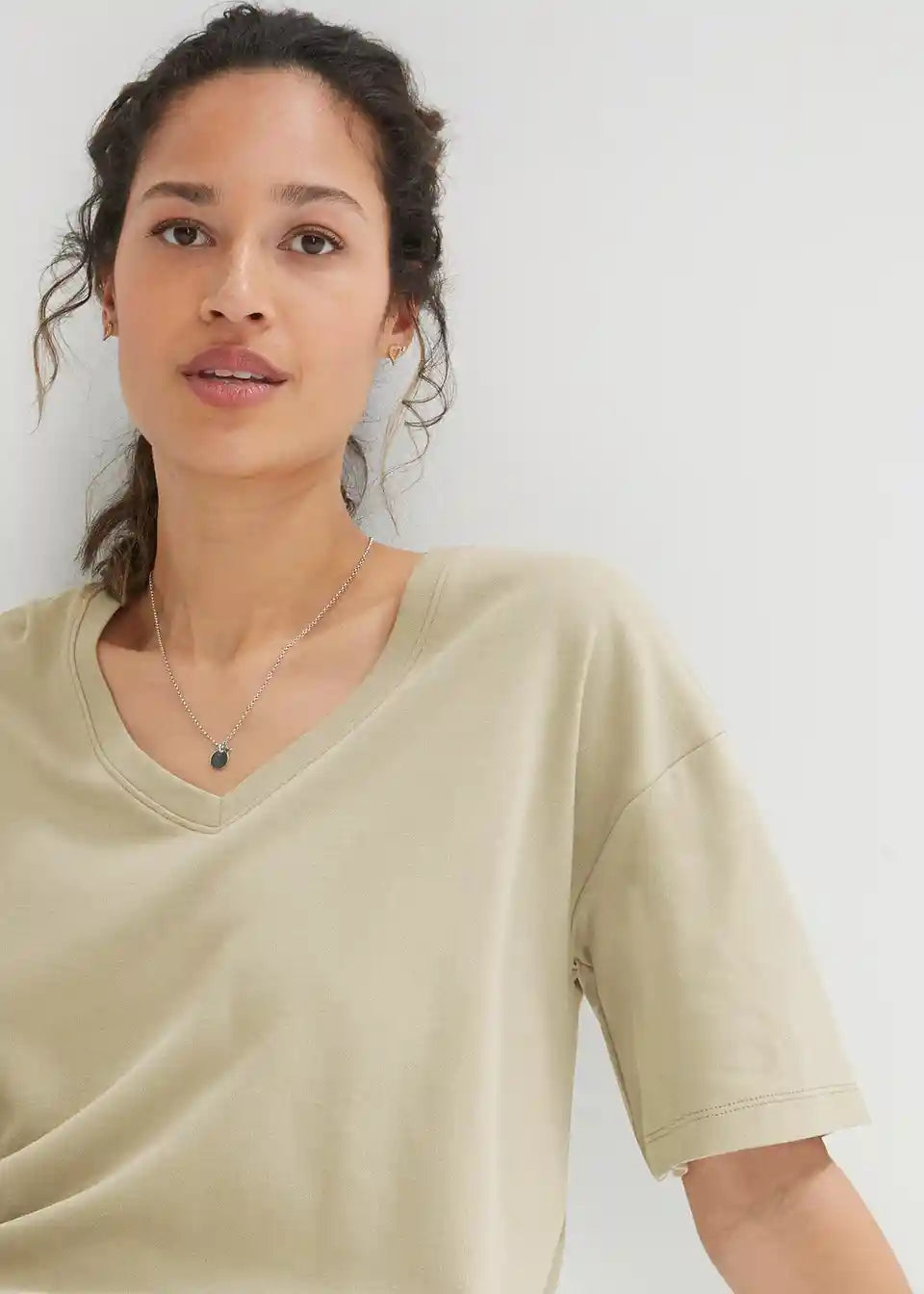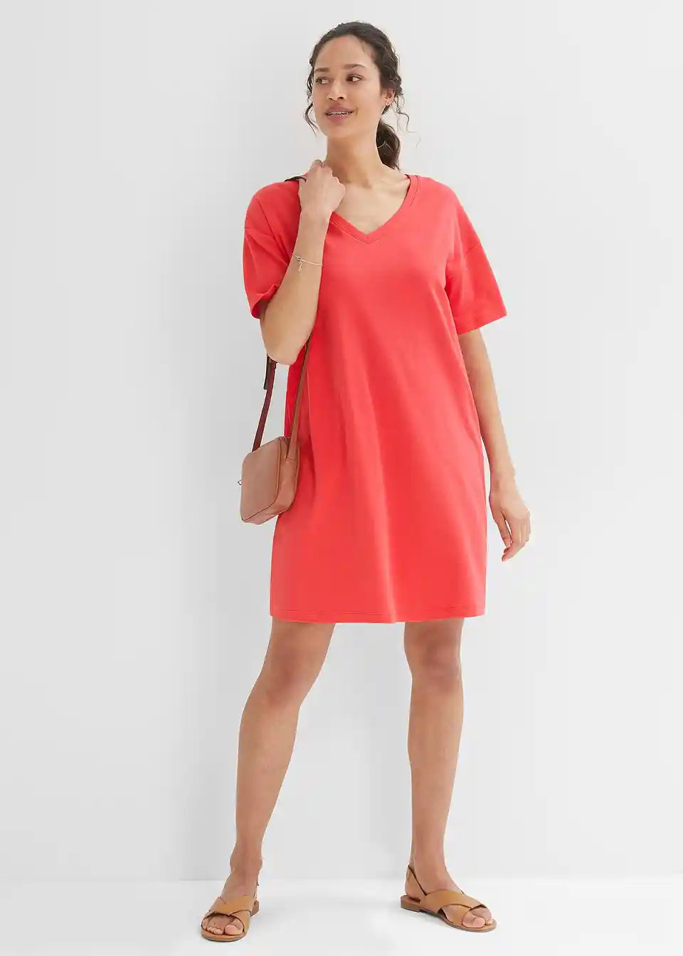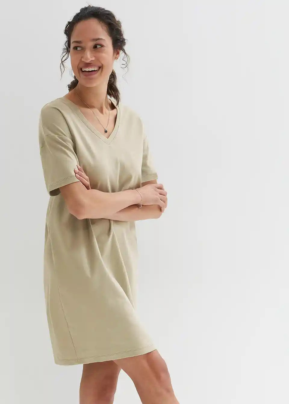 Oversize haljina T-shirt kroja s V izrezom od organskog pamuka (2 komada)