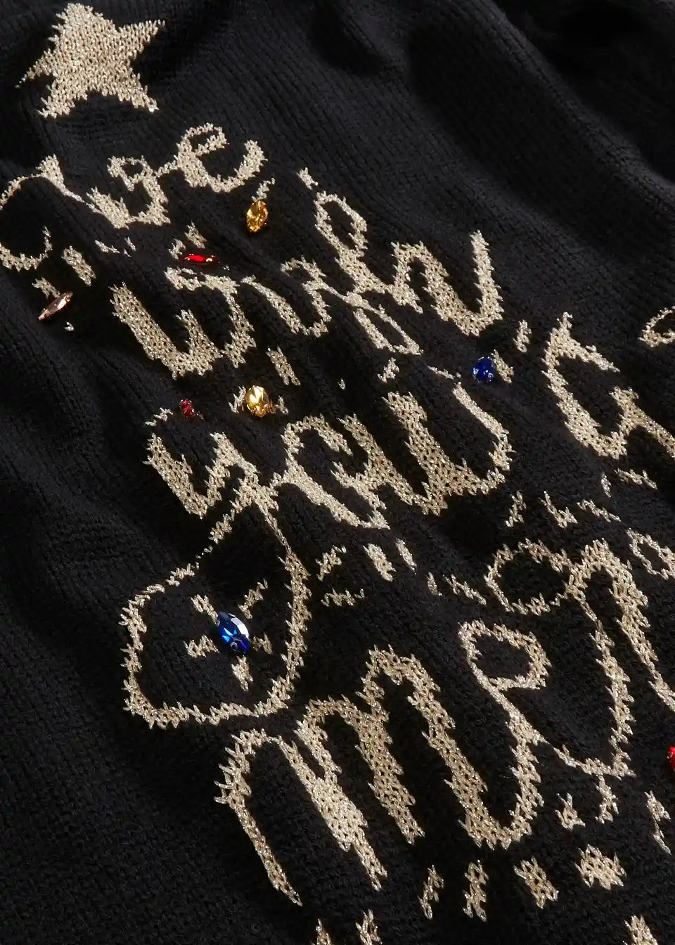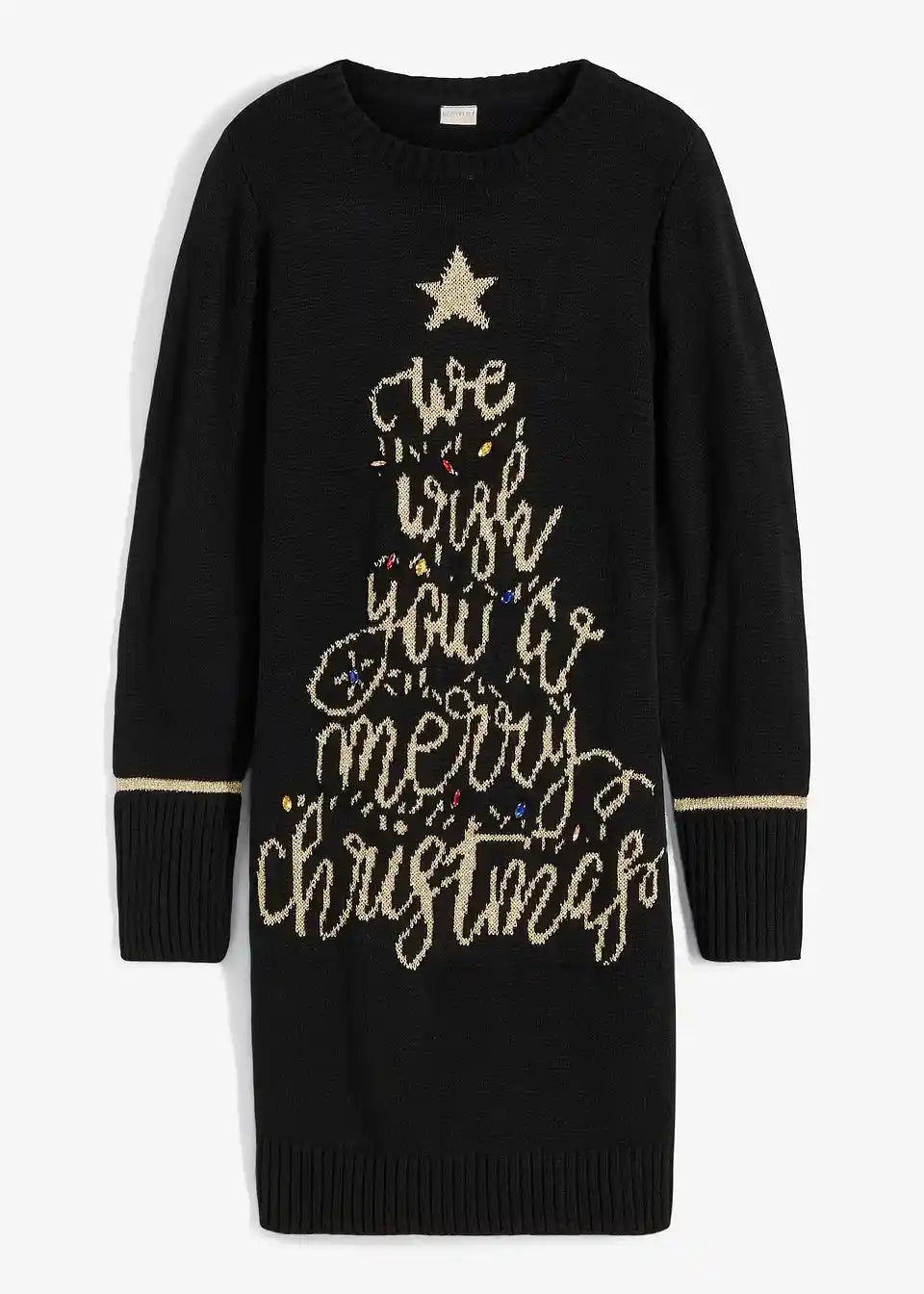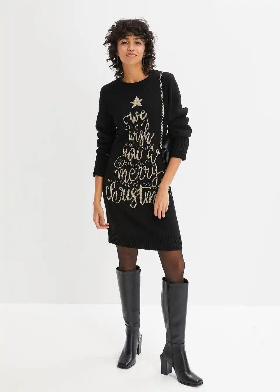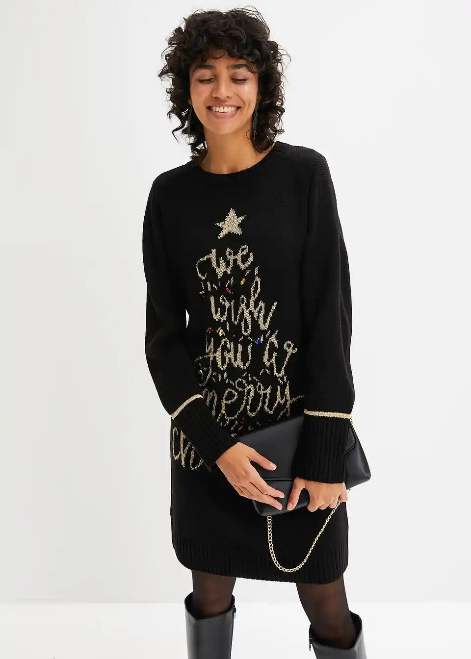 Ženska pletena haljina sa slatkim božićnim motivom. Dužina u veličini 36/38 oko 90 cm.