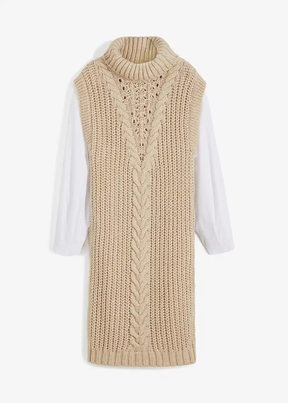 moderna pletena haljina s rukavima od bluze i pletenim uzorkom.
