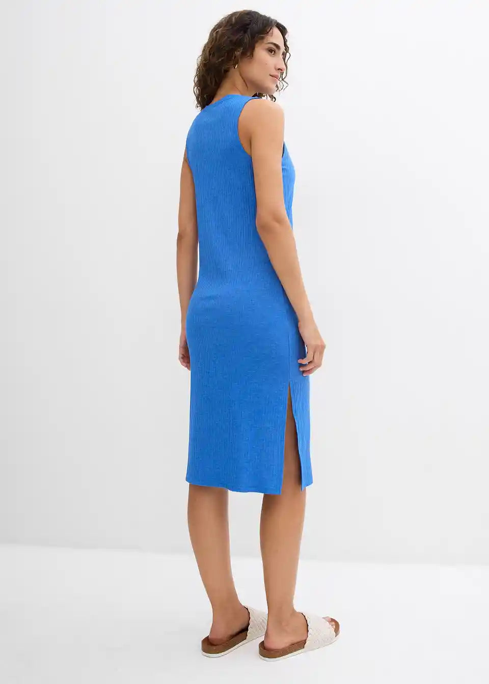 Rebrasta haljina s prorezima sa strane od padajućeg materijala s udjelom viskoze