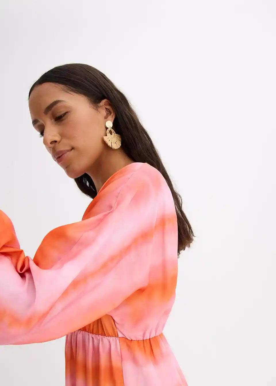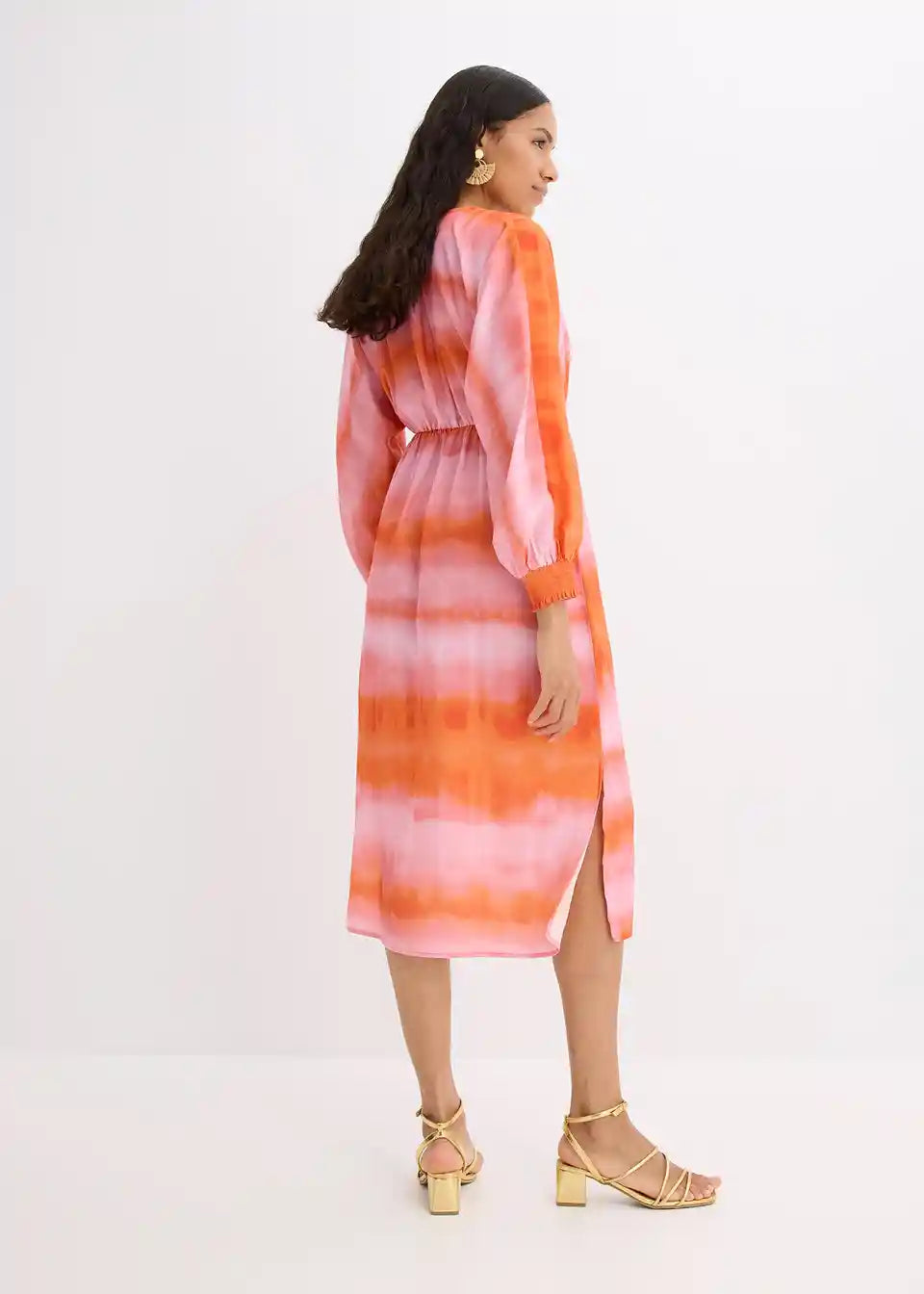 tisana midisuknja od lepršavog satena s ljetnim batik printom i široko krojenim rukavima