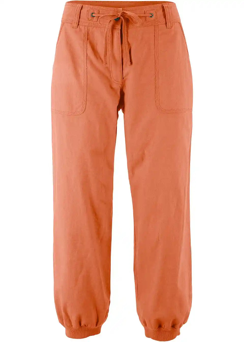Lako za nošenje i lijepo za kombiniranje – ove lanene hlače u 3/4 dužini idealan su odabir za toplije dane. Elastični, rebrasti rubovi pružaju osjećaj slobode kretanja i udobnosti oko područja nogu. Zahvaljujući vezici u pojasu moguće je prilagoditi širinu prema želji i figuri. 3/4 lanene hlače od bpc marke imaju dva velika ukrasna džepa sprijeda i klasično se zatvaraju s gumbom i patentnim zatvaračem.