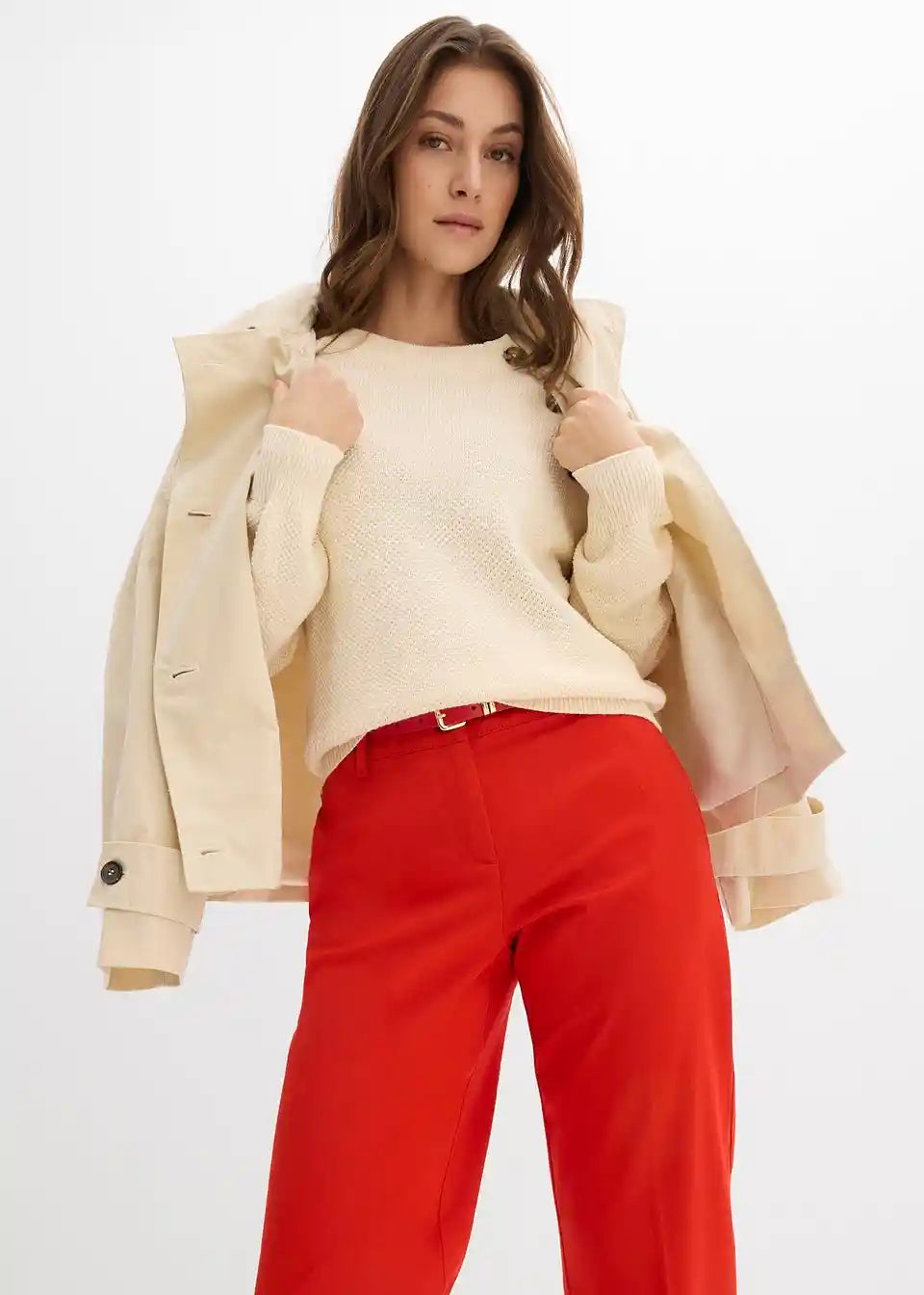 Moderne Chino hlače od lepršavog satena, s preklopljenim pojasom