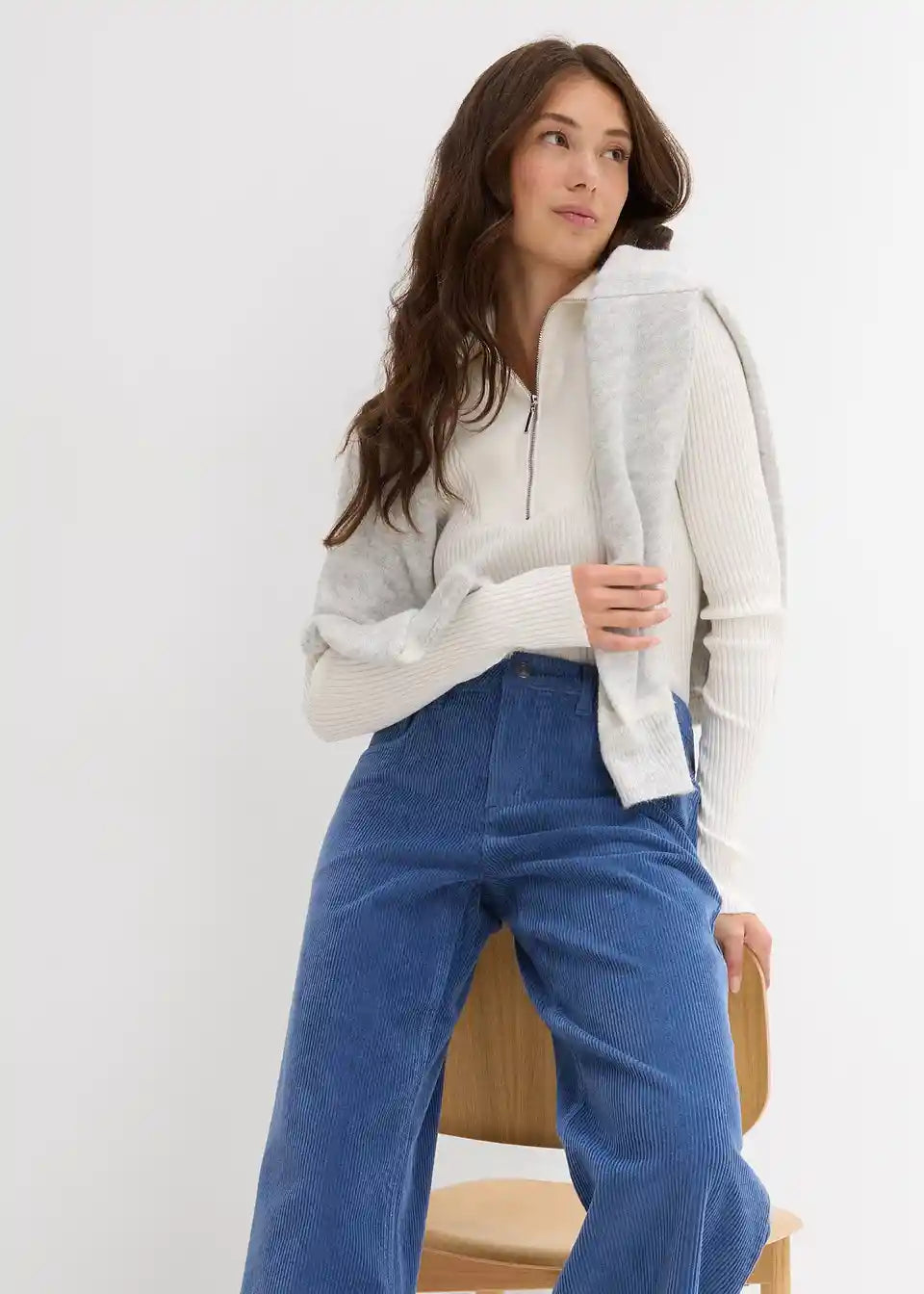 Ležerne široke Cord hlače od elastične mješavine pamuka