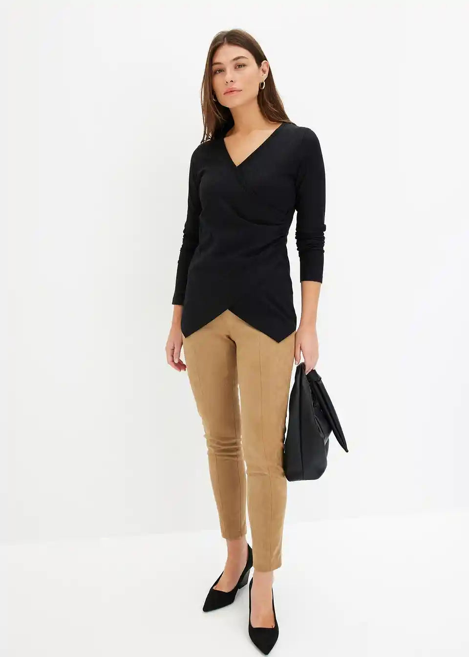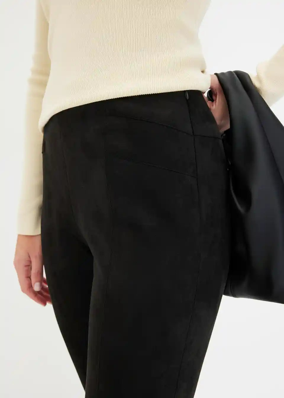 Hlače od imitacije velur kože s komotnim strukom