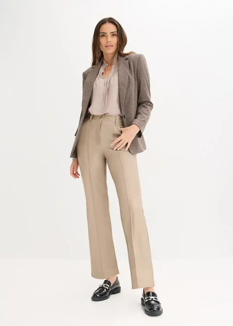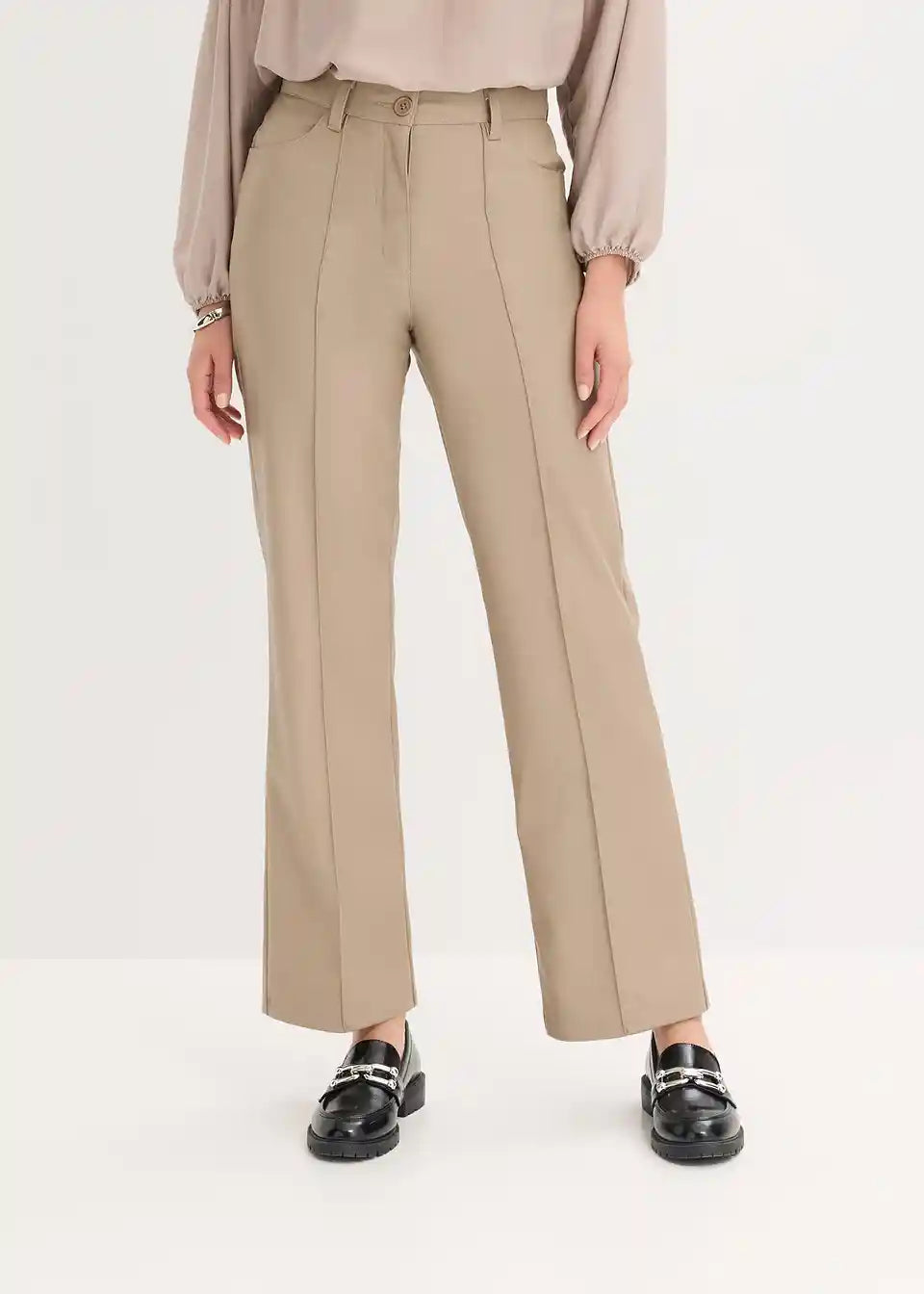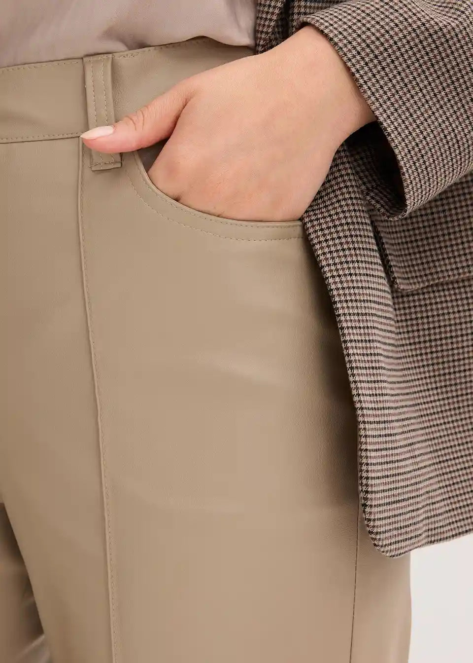 Hlače ravnog kroja od imitacije kože s prošivenim rubovima