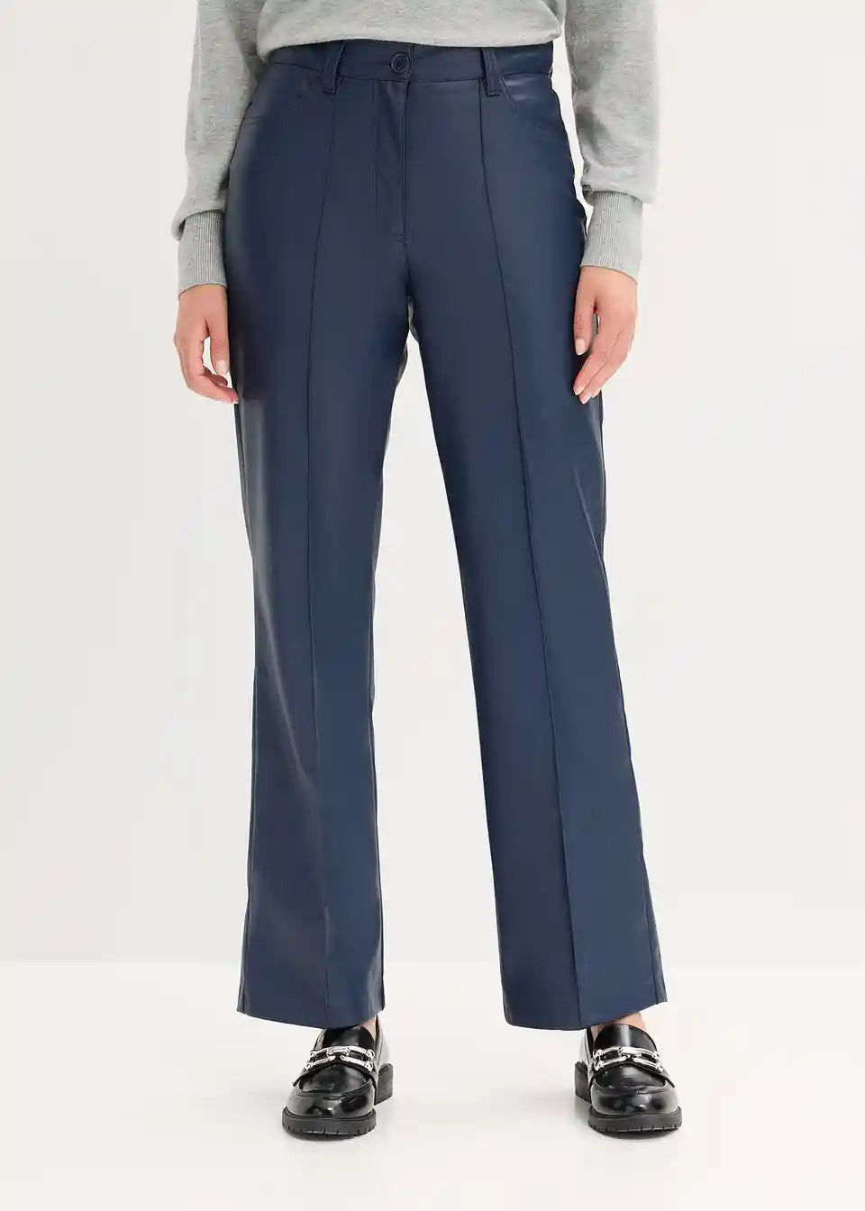 moderne Wide Leg hlače od imitacije kože s peglanom crtom