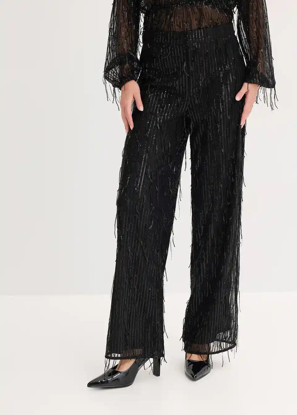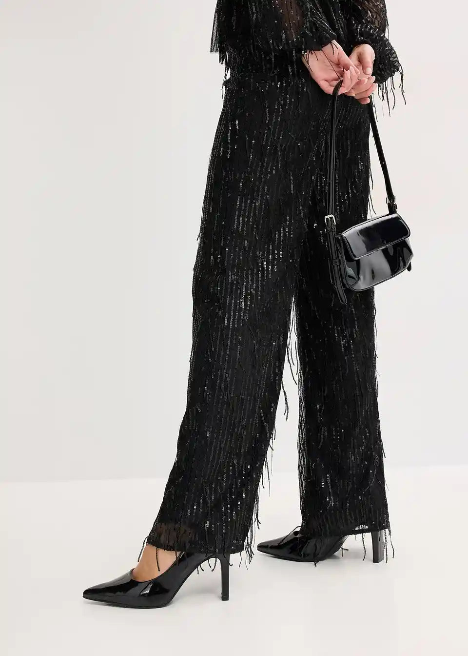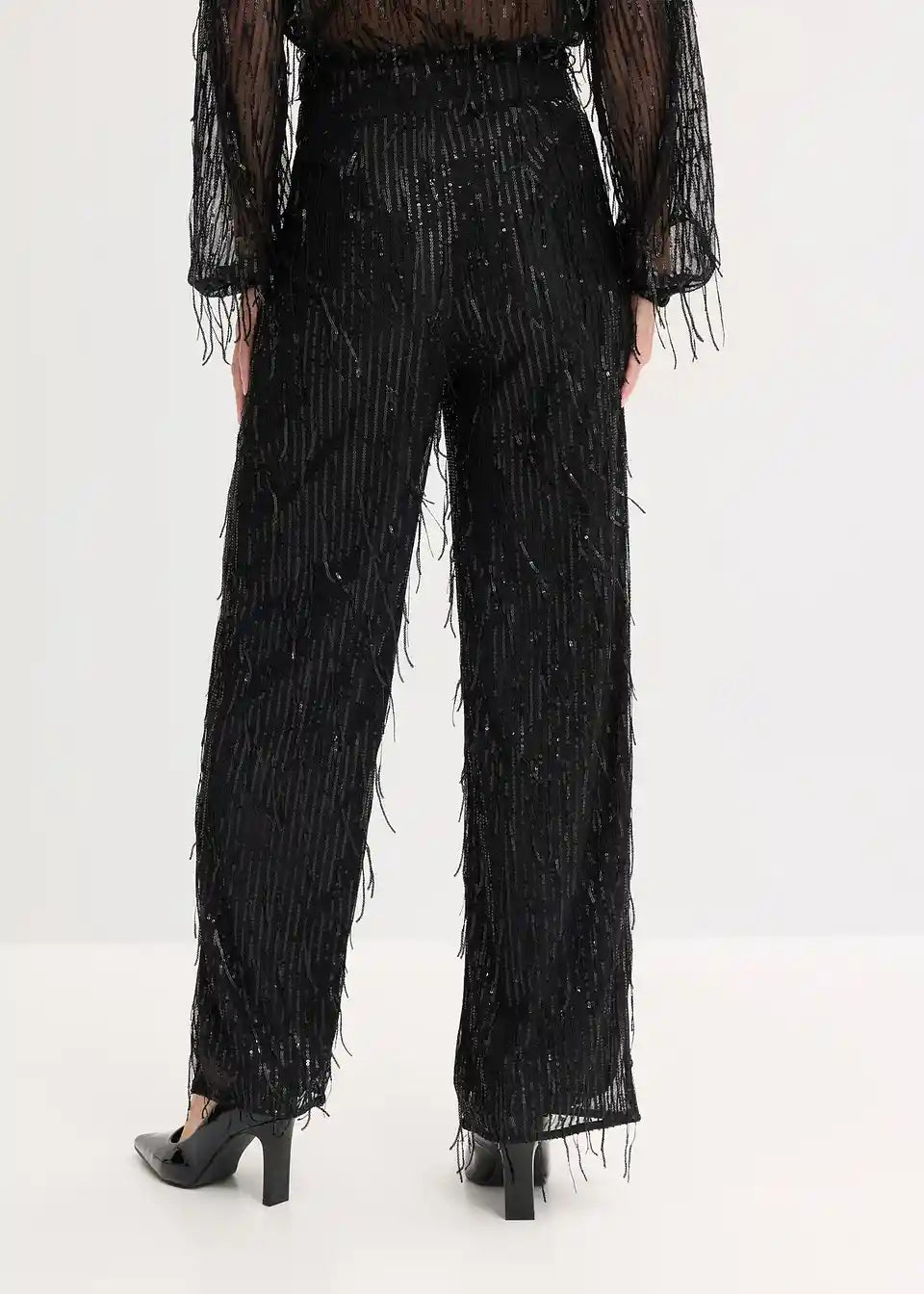 moderne hlače s pailettama s resicama od pailetta, podstavljene.