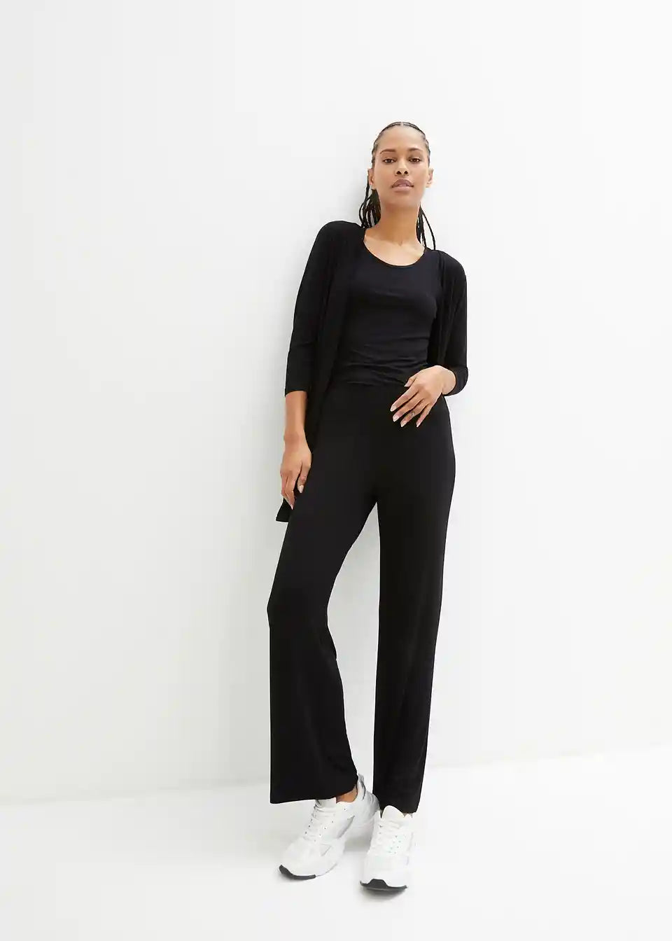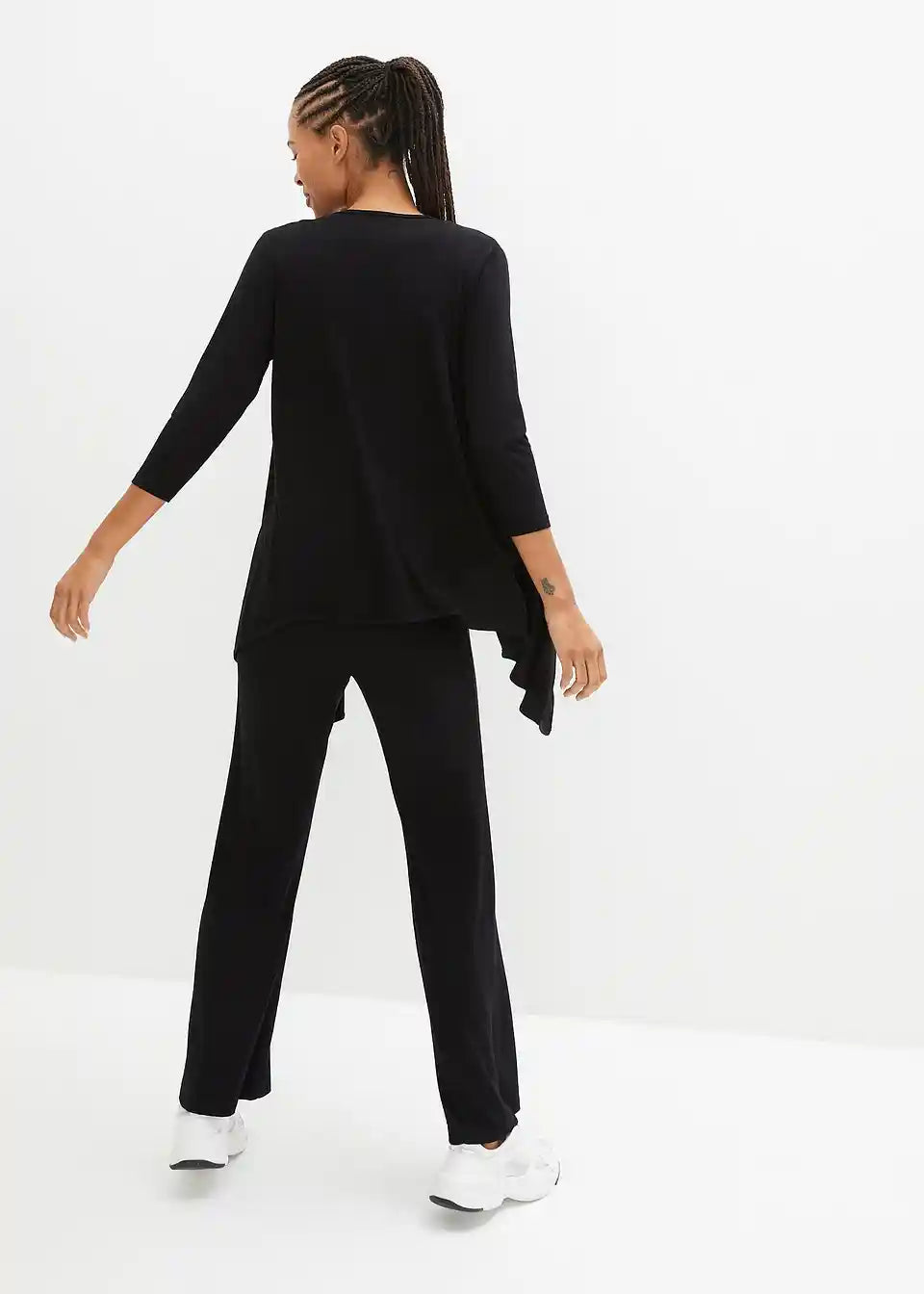 3-dijelni set od majice, jakne i hlača, jakna s 3/4 rukavima i funkcijom vezanja, široke hlače, duljina u veličini 40/42 cca. 74 cm, perivo u perilici rublja.