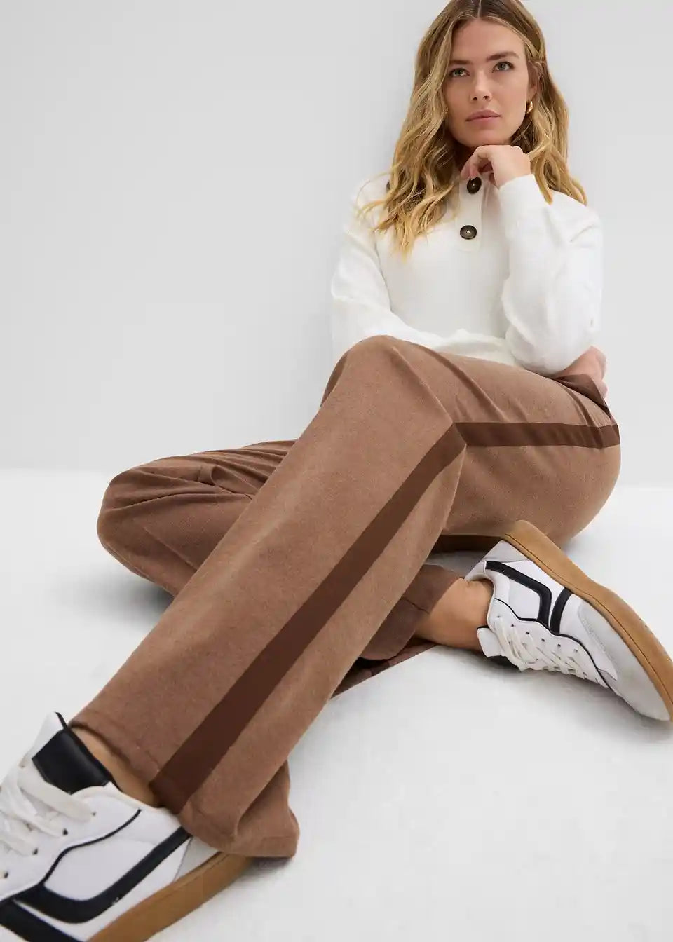 Marlene hlače s visokim, djelomično elastičnim pojasom i bočnim detaljem s prugom.