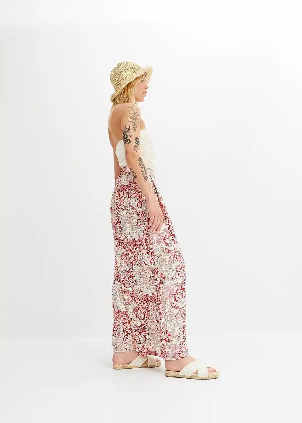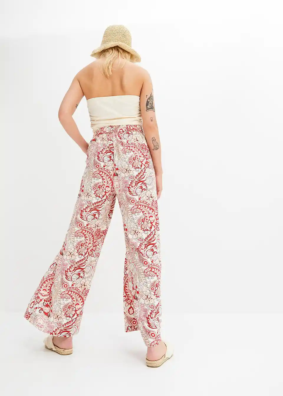 Tolle leichte Sommerhose - weicher leichter Stoff - schöne Farbe und Muster. Schnitt angenehm - betont Po und an den Beinen weit. Oben als Kontrast was enges tragen - sieht top aus. Sie könnte 5cm länger sein- aber im Sommer ok.