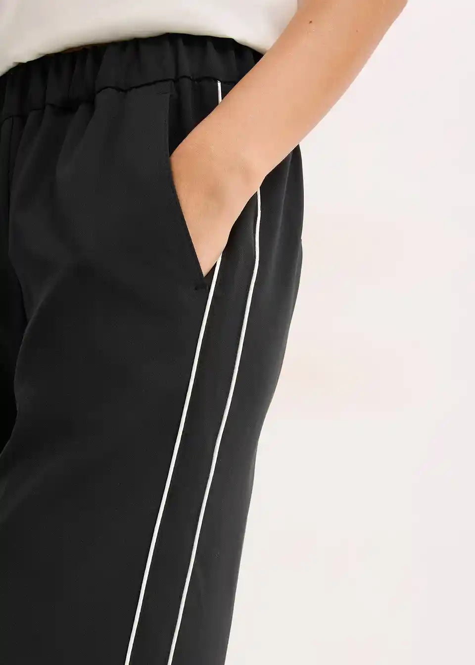 Ležerne, široko krojene hlače s ukrasnim prugama i elastičnim pojasom