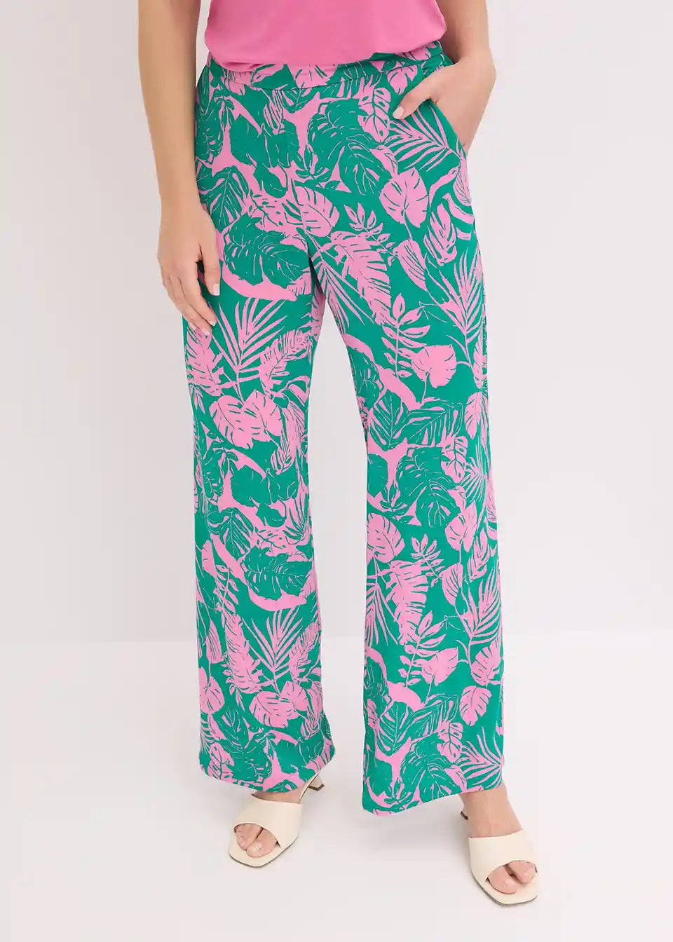 moderne široke hlače od strukturiranog satena s elastičnom gumom straga i cvjetnim printom