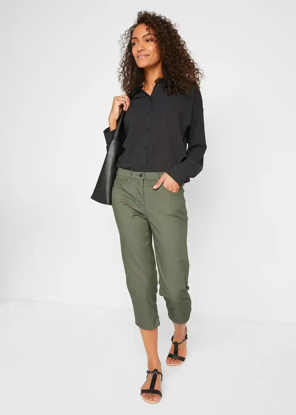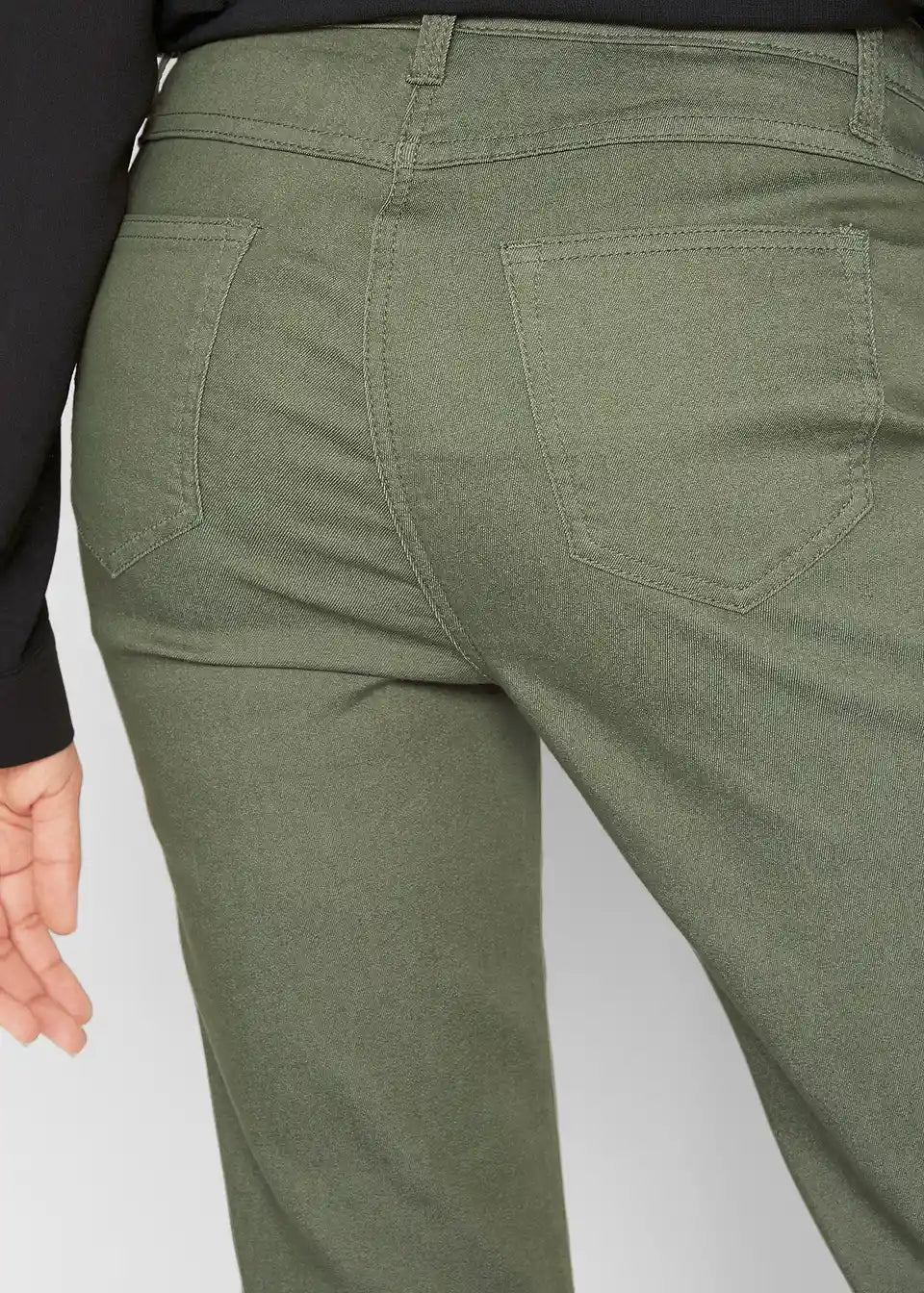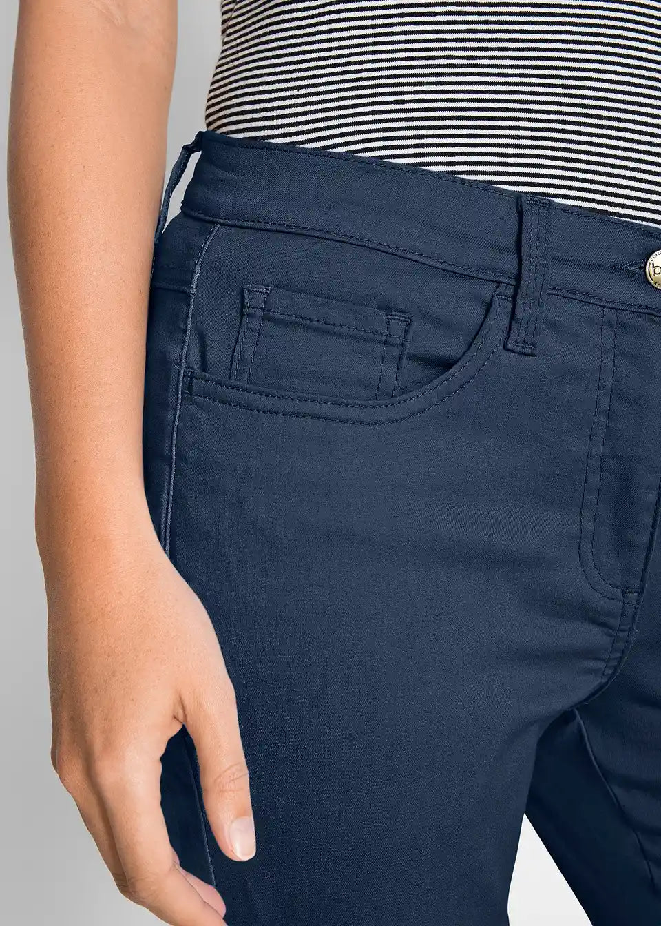 Uskliznite i osjećajte se udobno – ove rastezljive hlače u aktualnoj 3/4 dužini obogaćuju garderobu svestranim komadom odjeće. Zahvaljujući posebnom udjelu rastezljivih materijala, hlače se prilagođavaju oblinama tijela i omogućuju ugodnu slobodu kretanja. Povišeni struk i udobni pojas pružaju dodatnu udobnost. 3/4 Super-streč hlače marke bpc mogu se zatvarati gumbom i patentnim zatvaračem. Savršeno se kombiniraju uz ravne cipele poput tenisica ili baletanki.