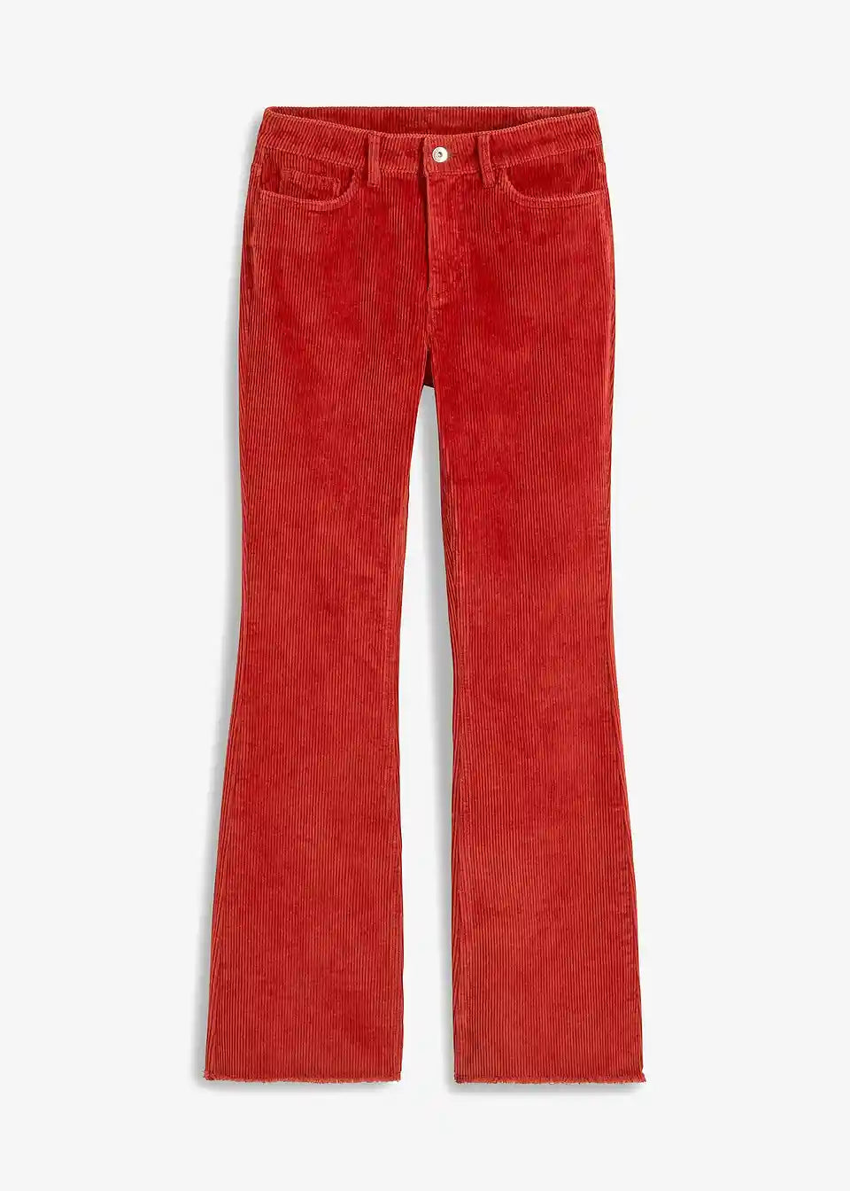 Ležerne hlače od samta s proširenim nogavicama i otvorenim rubom