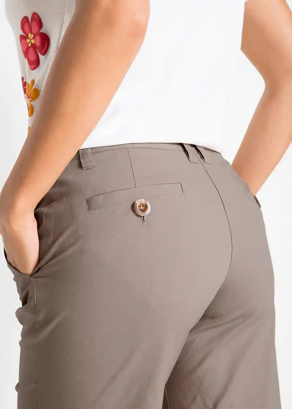 Prekrasne bermude marke bpc idealne su za tople dane. Kratka nogavica je ravno krojena i završava ležernim zavrnutim rubom. Zahvaljujući udobnom elastičnom materijalu od rastezljivog pamuka, ove hlače imaju optimalno pristajanje i pružaju visok stupanj udobnosti. Za vizualno razvedravanje tu su dva praktična koso krojena džepa sprijeda i dva dzšepa s prorezima sa stražnje strane. Zahvaljujući petljama za remen na struku s oblikovanim pojasom, bermude se također mogu nositi s remenom.