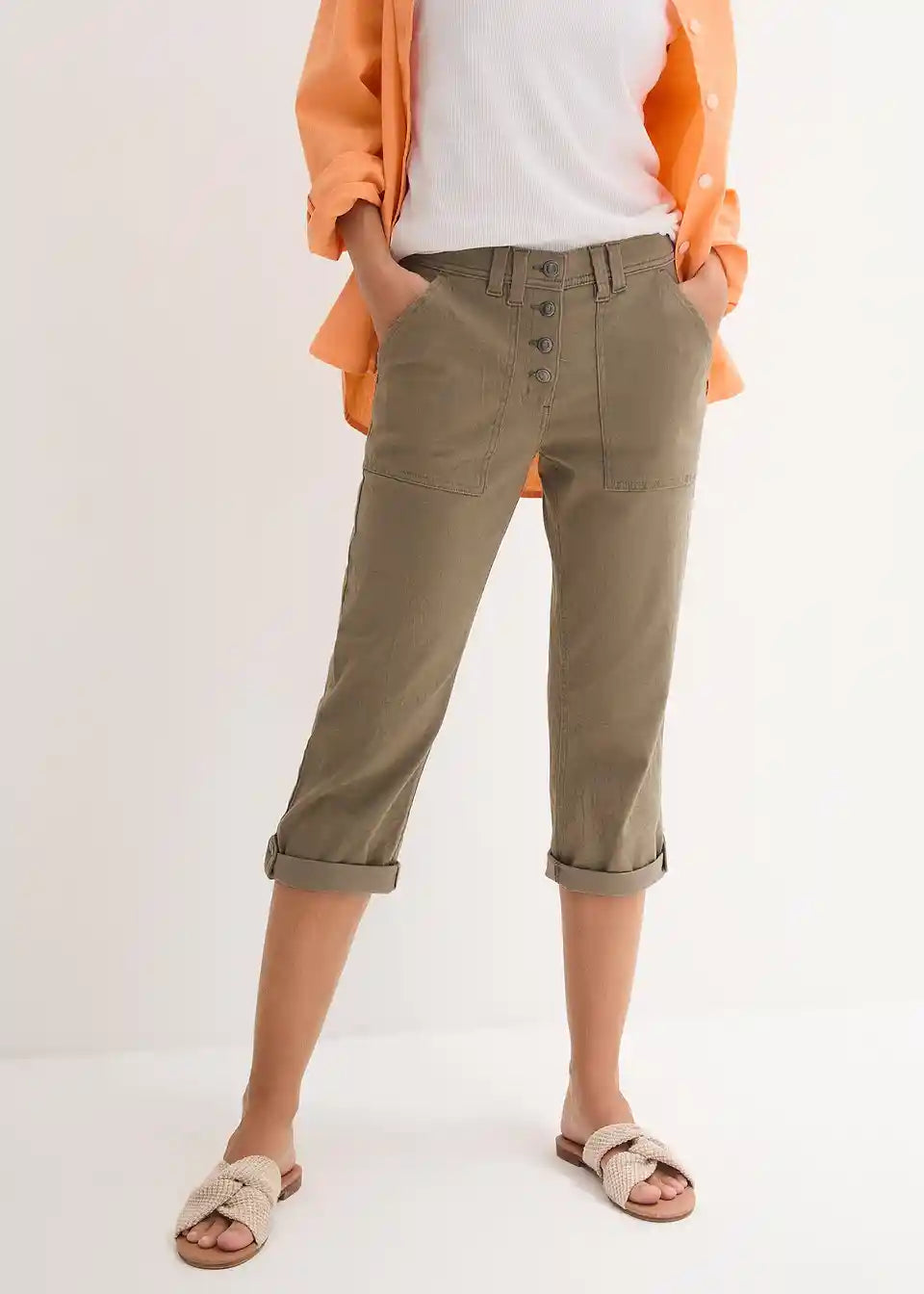Stretch-hlače s efektom nabora, dužine do listova