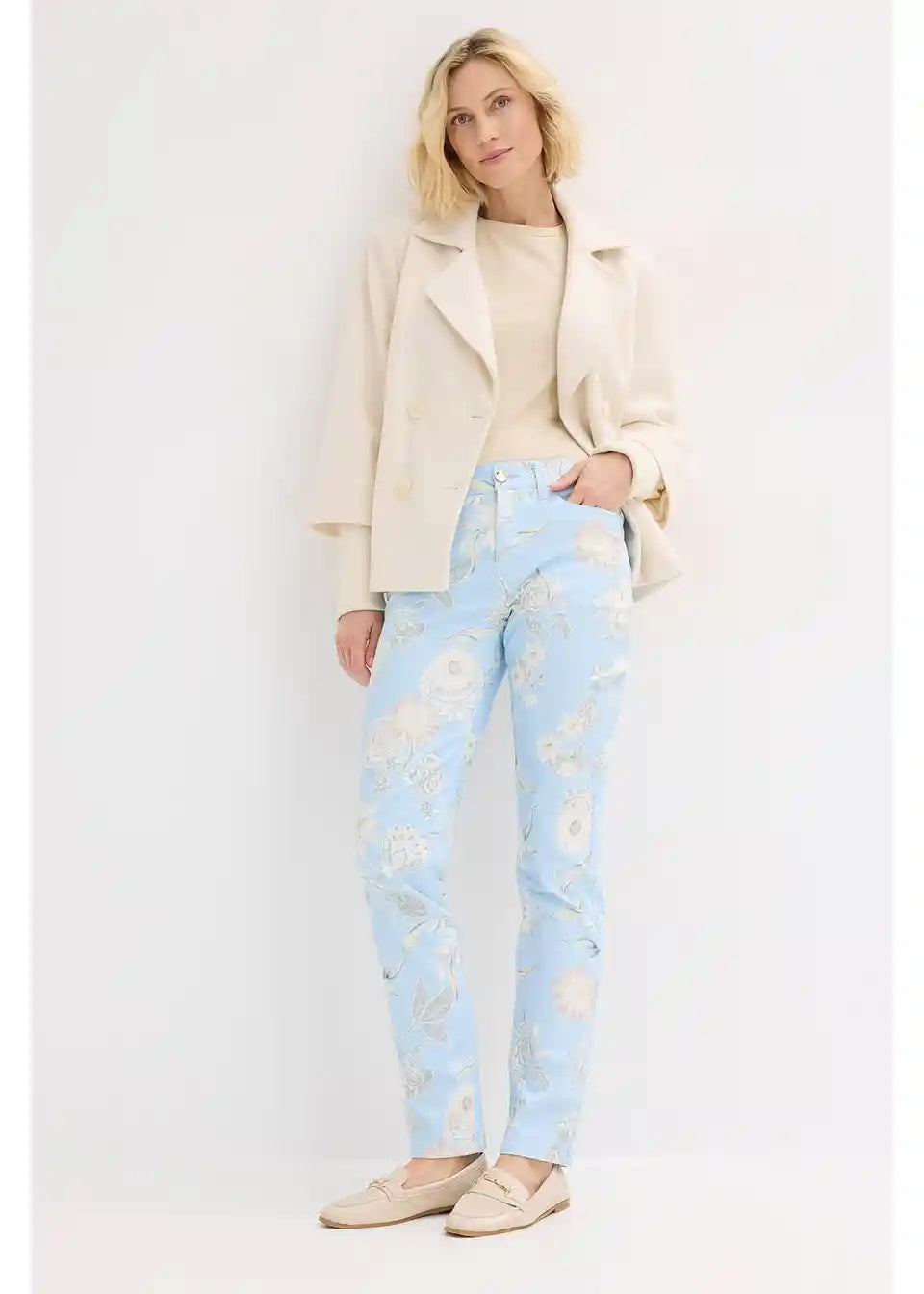 elegantne Stretch-hlače s cvjetnim motivom