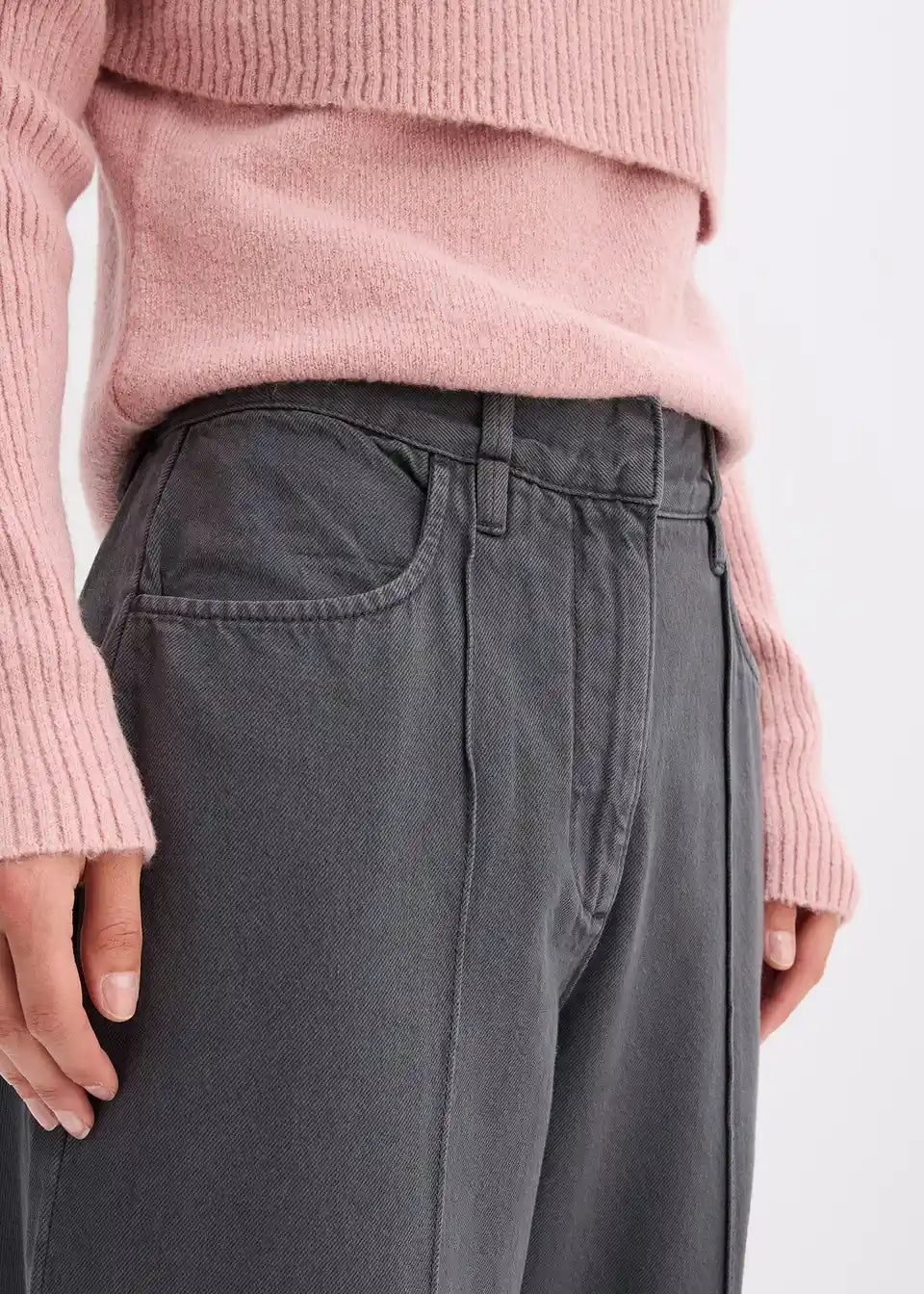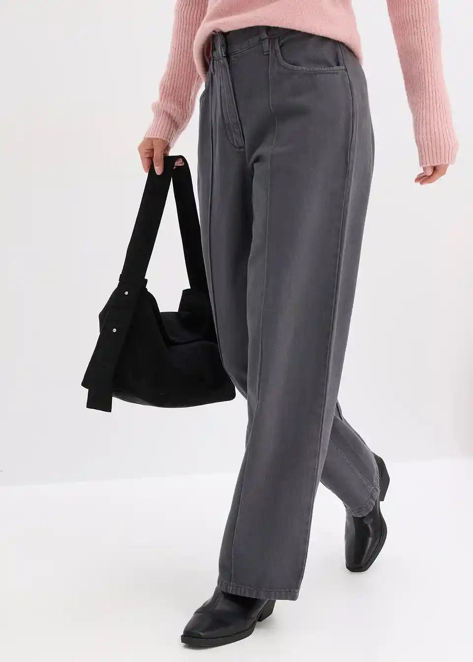 Ležerne twill hlače sa širokim nogavicama i bočnim džepovima