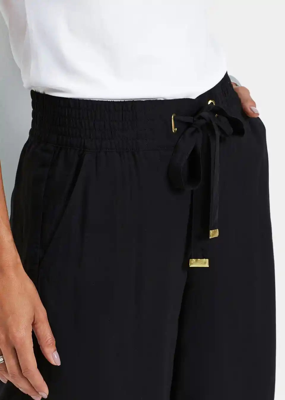 Udoban pojas, dva bočna džepa. Unutarnja duljina nogavice cca 28 cm (vel. 36) do cca 30,7 cm (veličina 54), periva u perilici rublja.