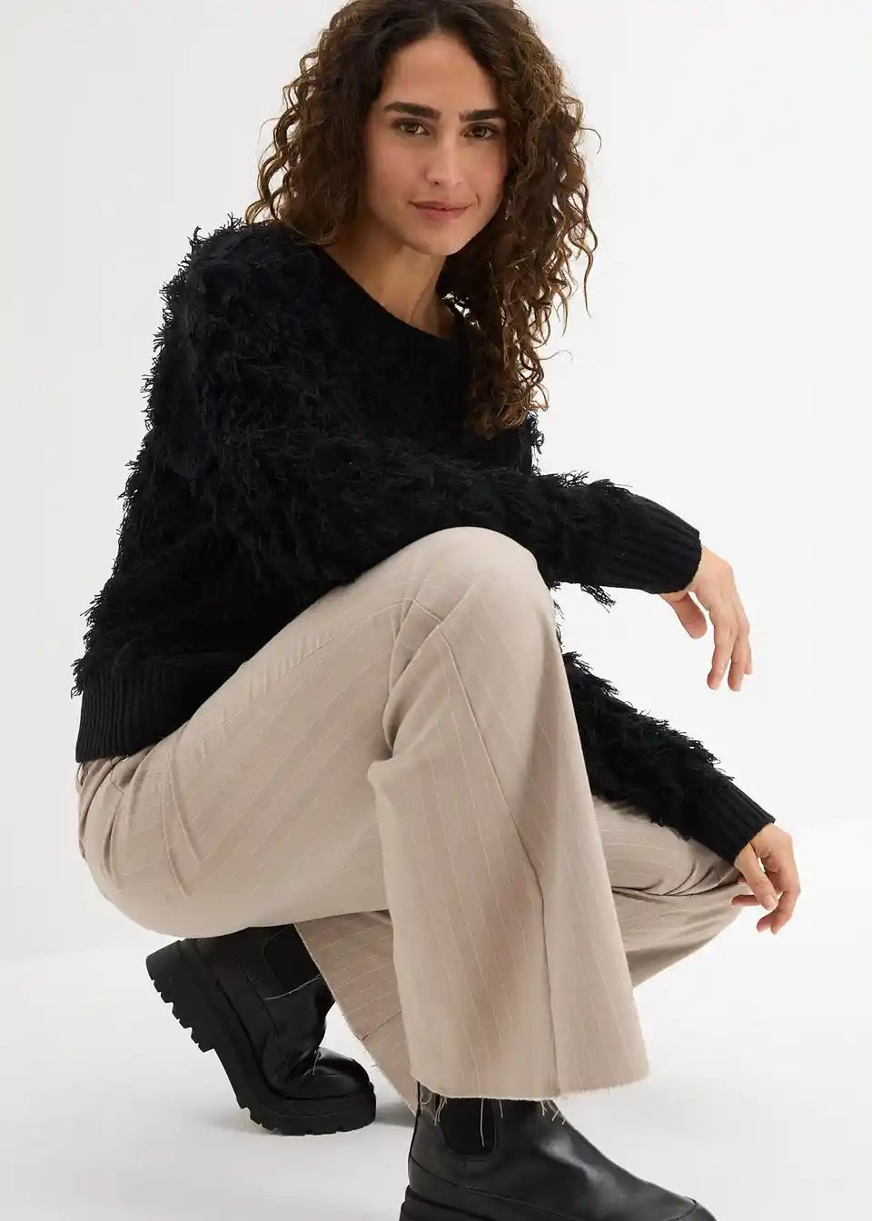 Moderne zvonolike hlače od lepršave mješavine viskoze s nitnama i otvorenim rubom