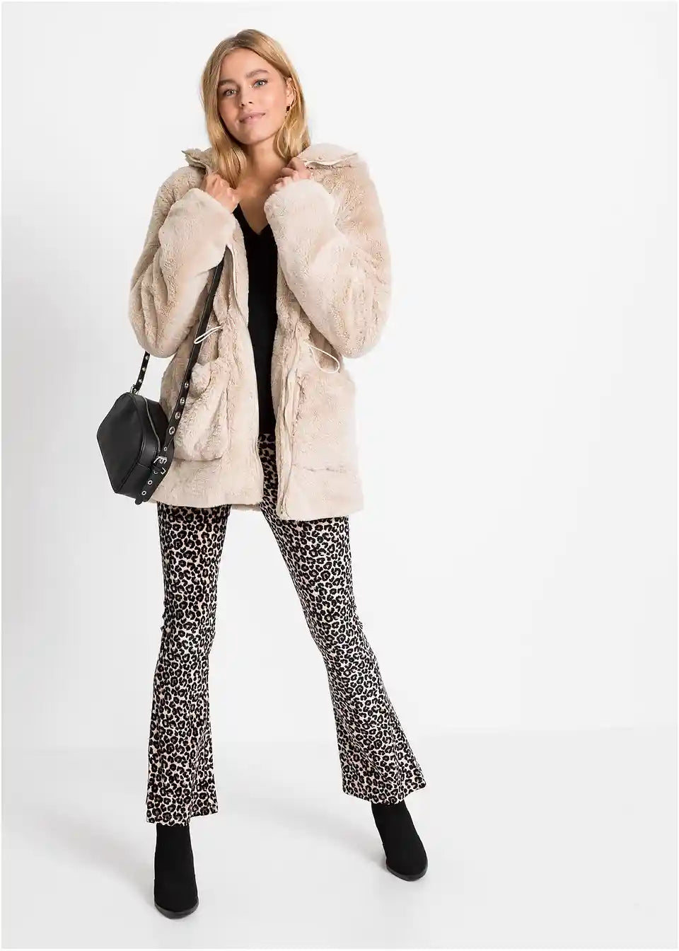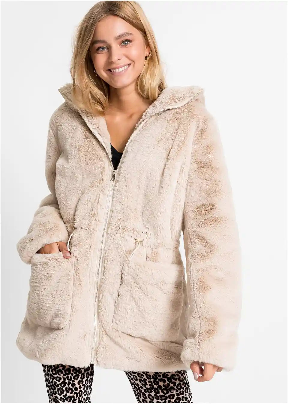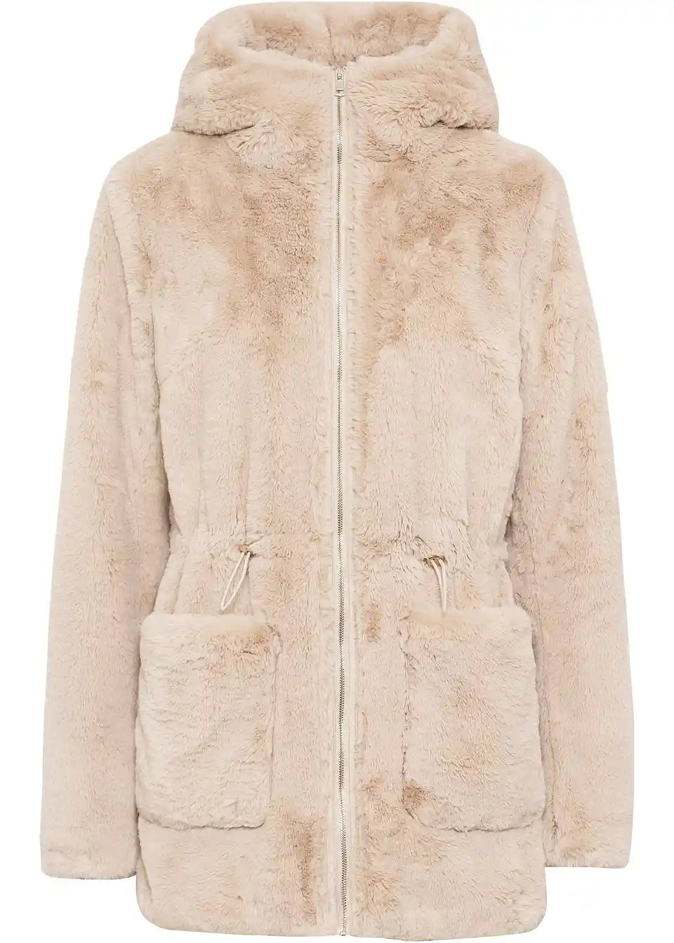Jakna od umjetnog krzna, mekana na dodir, s pojasom u struku