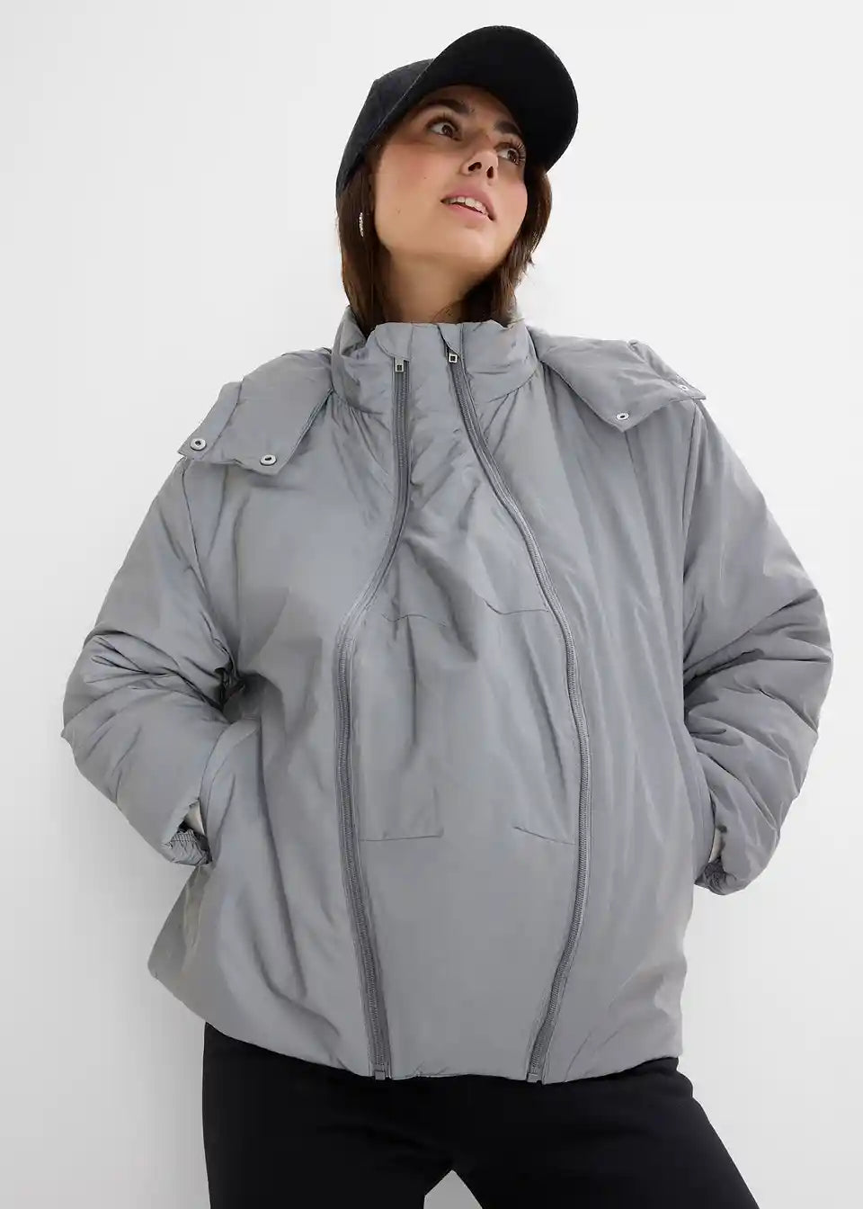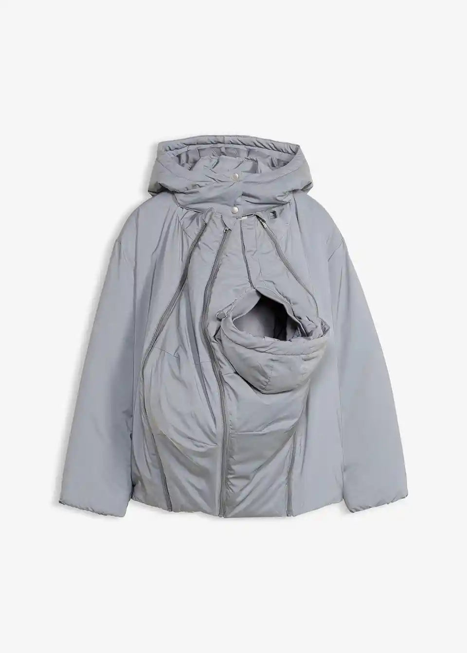 Ova jakna pruža toplinu, funkcionalnost i sigurnost u svakodnevici, tijekom trudnoće i nakon nje. Reflektirajući vanjski materijal osigurava bolju vidljivost u prometu. Jakna ima dva umetka: proširujući umetak za trudnoću i umetak za nošenje bebe. Umetak za nošenje dizajniran je tako da ugodno grije vrat majke, ima skrivene drukere i dječju kapuljaču s podesivom vezicom. Ekstra velika kapuljača za majku pruža dodatnu zaštitu od vjetra i vremenskih uvjeta. Elastične manžete na rukavima sprječavaju prodor hladnoće i vjetra; donji dio jakne može se prilagoditi pomoću elastičnih vezica. Praktični džepovi nude dovoljno mjesta za važne stvari iz svakodnevnog života.