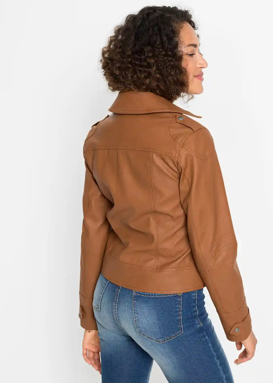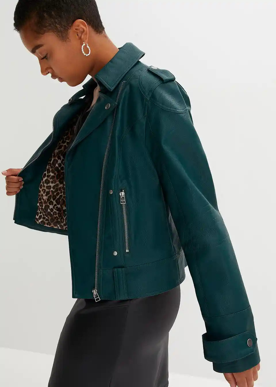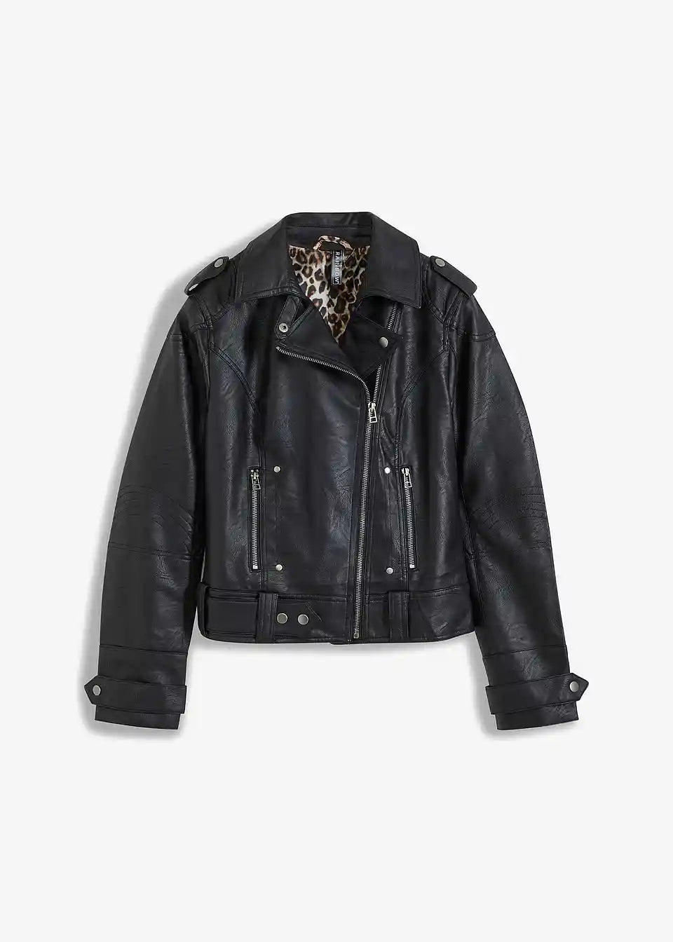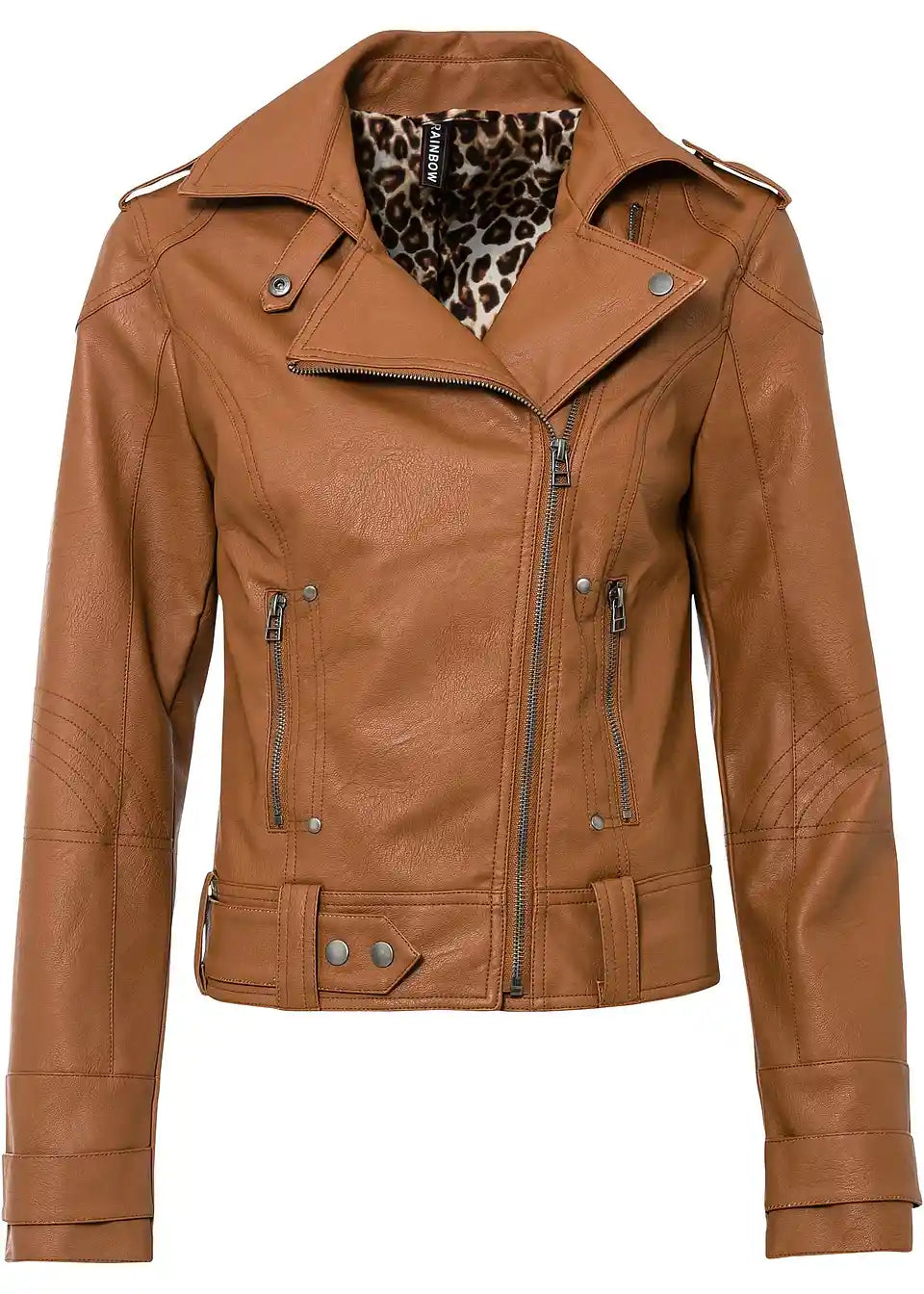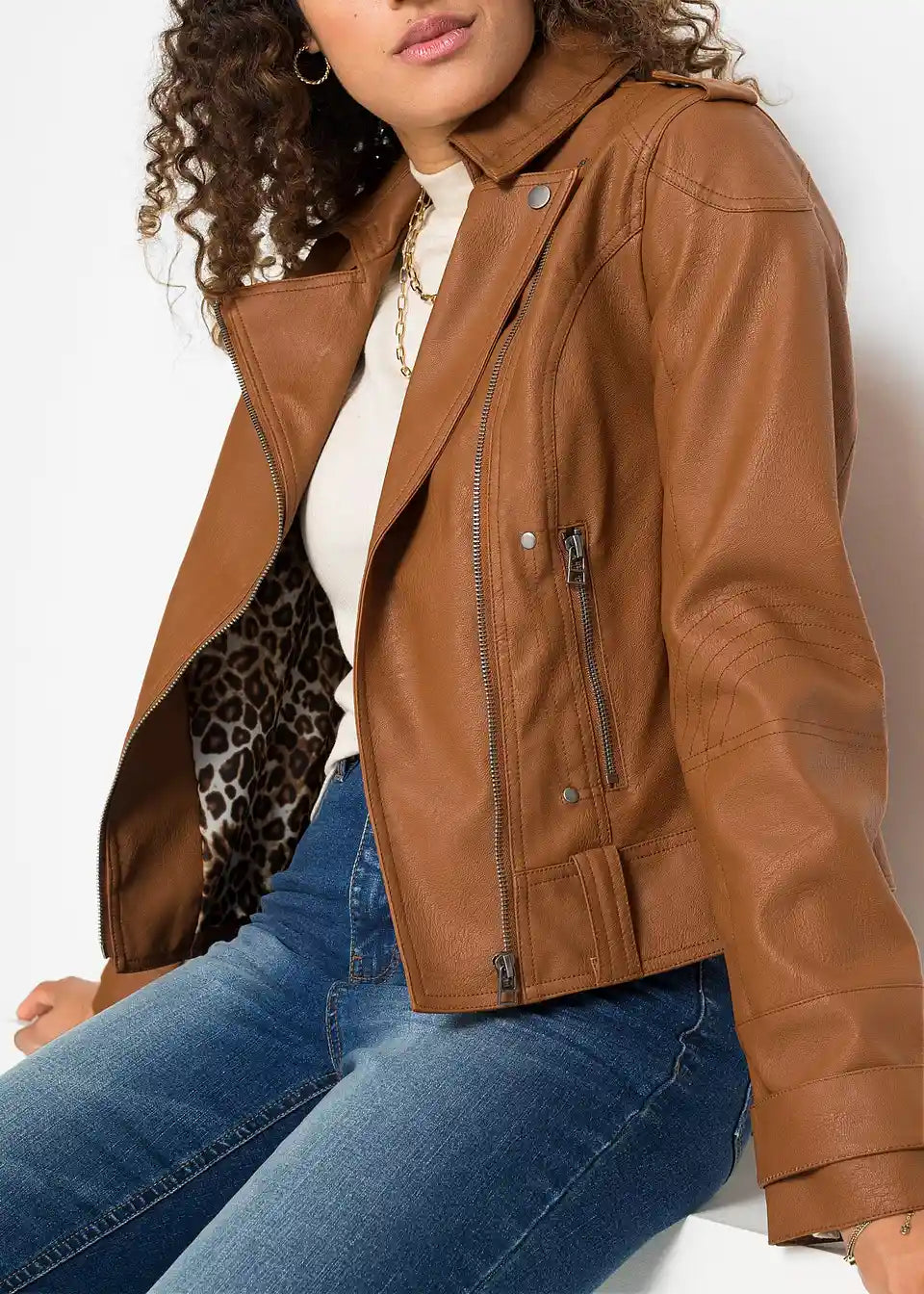 Ležerna jakna od umjetne kože s unutarnjom podstavom leopard uzorka