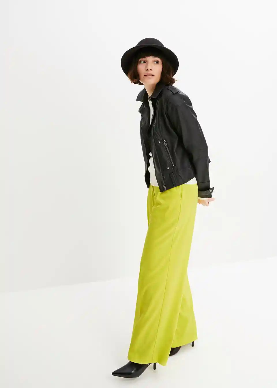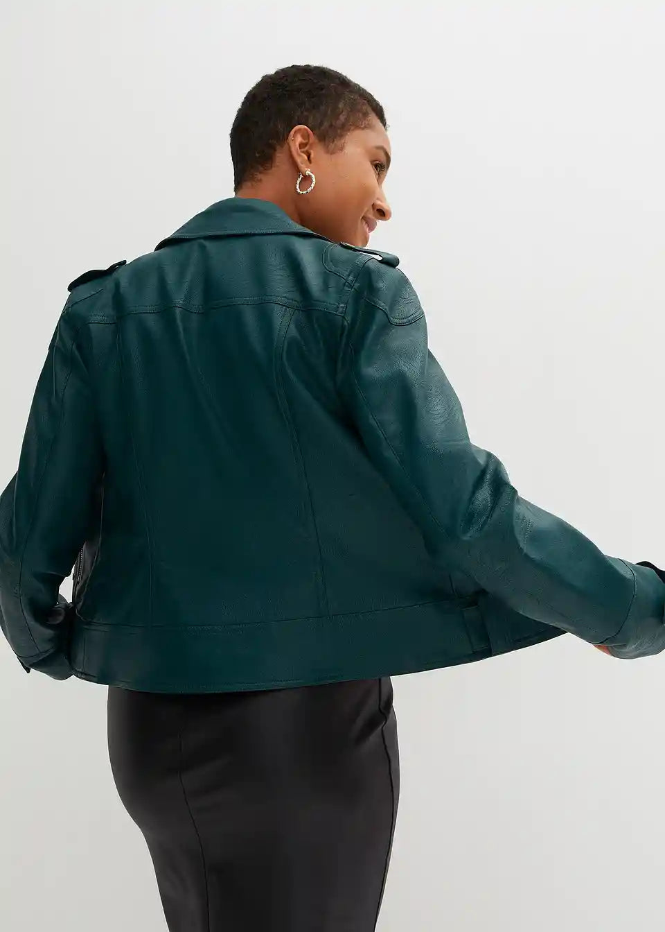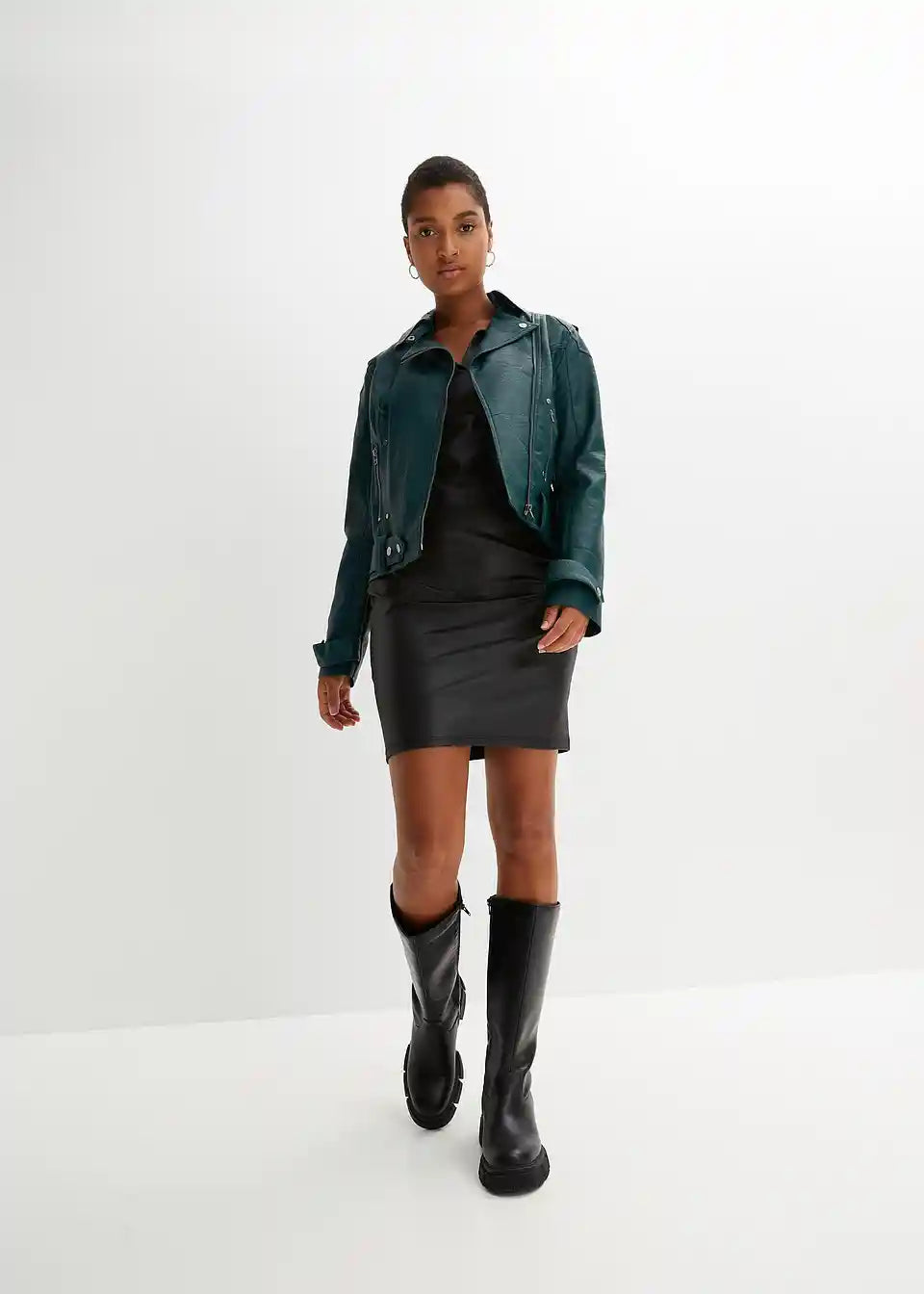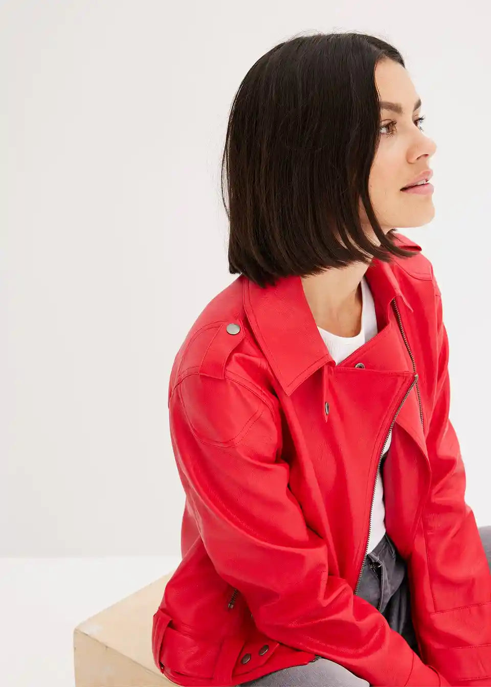 Biker-jakna svojim stylish dizajnom ostavlja upečatljiv dojam i daje odjeći rockerski izgled. Trendy detalji uključuju dodatne trake, upečatljive zakovice i drukere. Uz to se dobro uklapaju kosi patentni zatvarač i prednji džepovi. Na krajevima rukava, detalji s patentnim zatvaračem dodaju cool naglaske. Unutarnja podstava izrađena je od poliestera s leopard uzorkom, dok je gornji sloj od umjetne kože. Kombinirana s haljinom s uzorkom i gležnjačama, žena s ovom Biker-jaknom izgleda moderno i dotjerano.