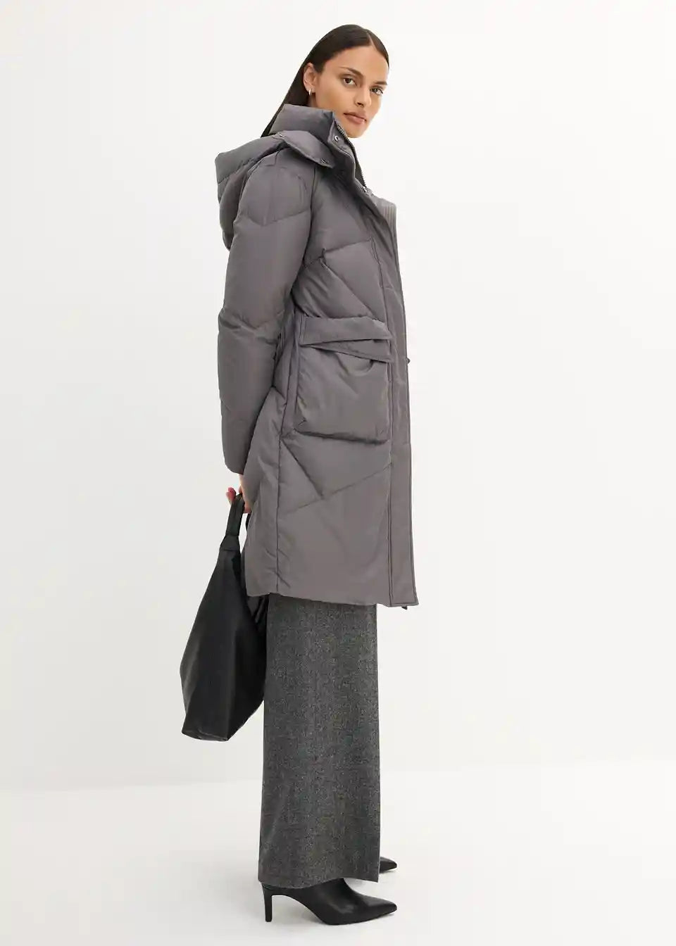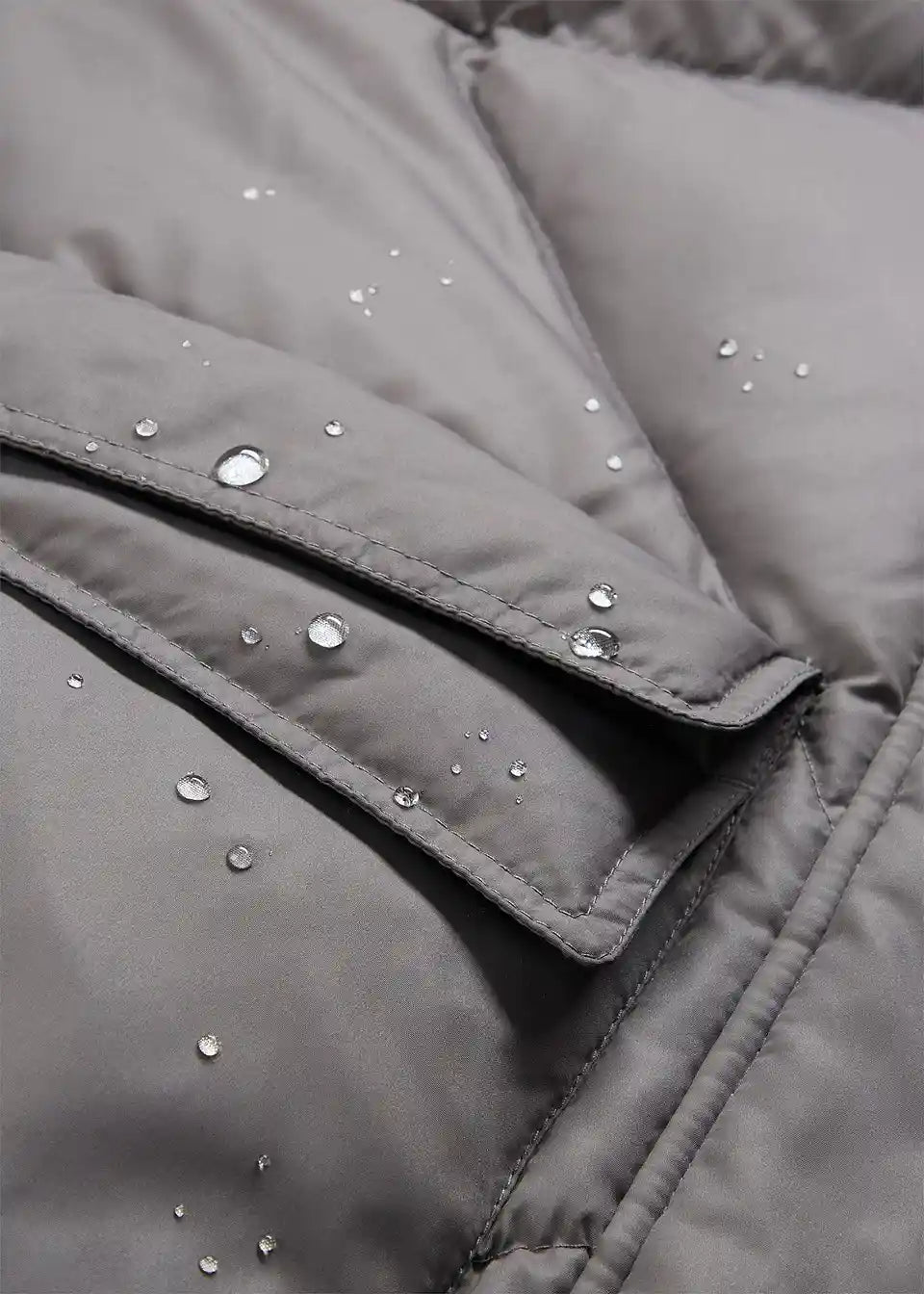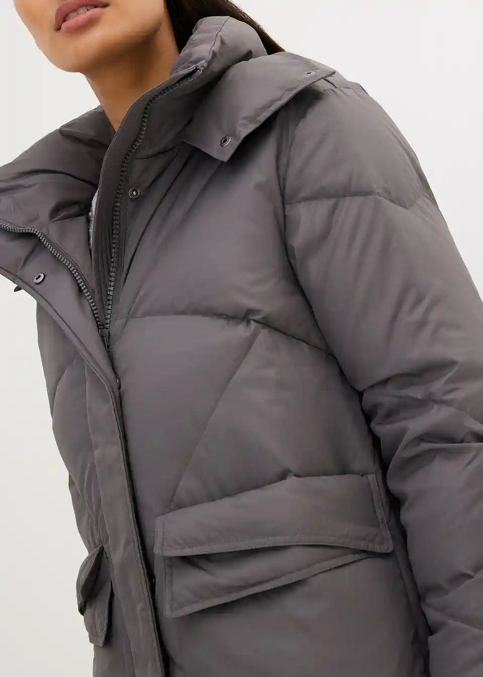 kvalitetna jakna premium kvalitete: pravo perje, moderan uzorak štepova, vodoodbojna završna obrada i odvojiva kapuljača