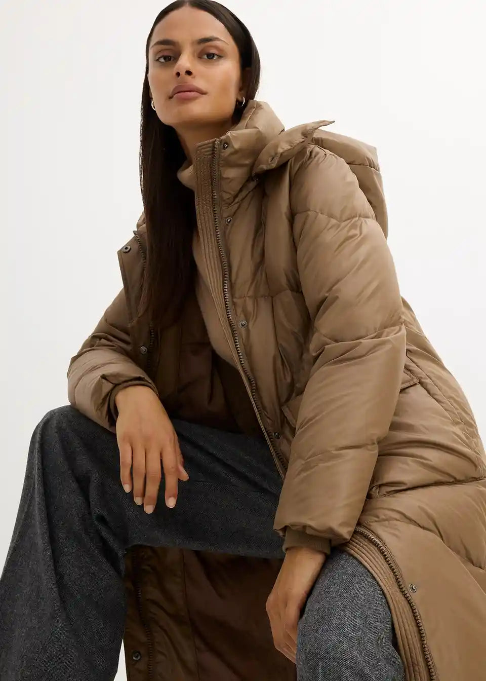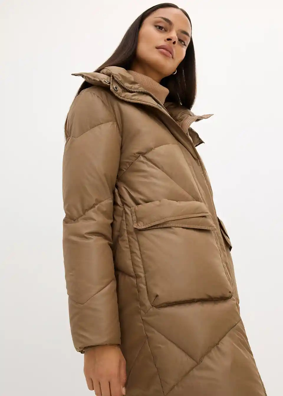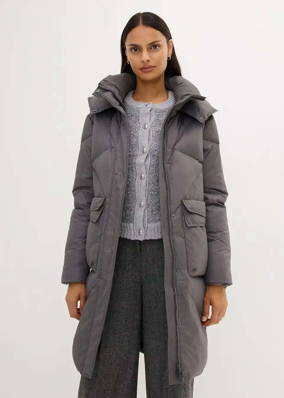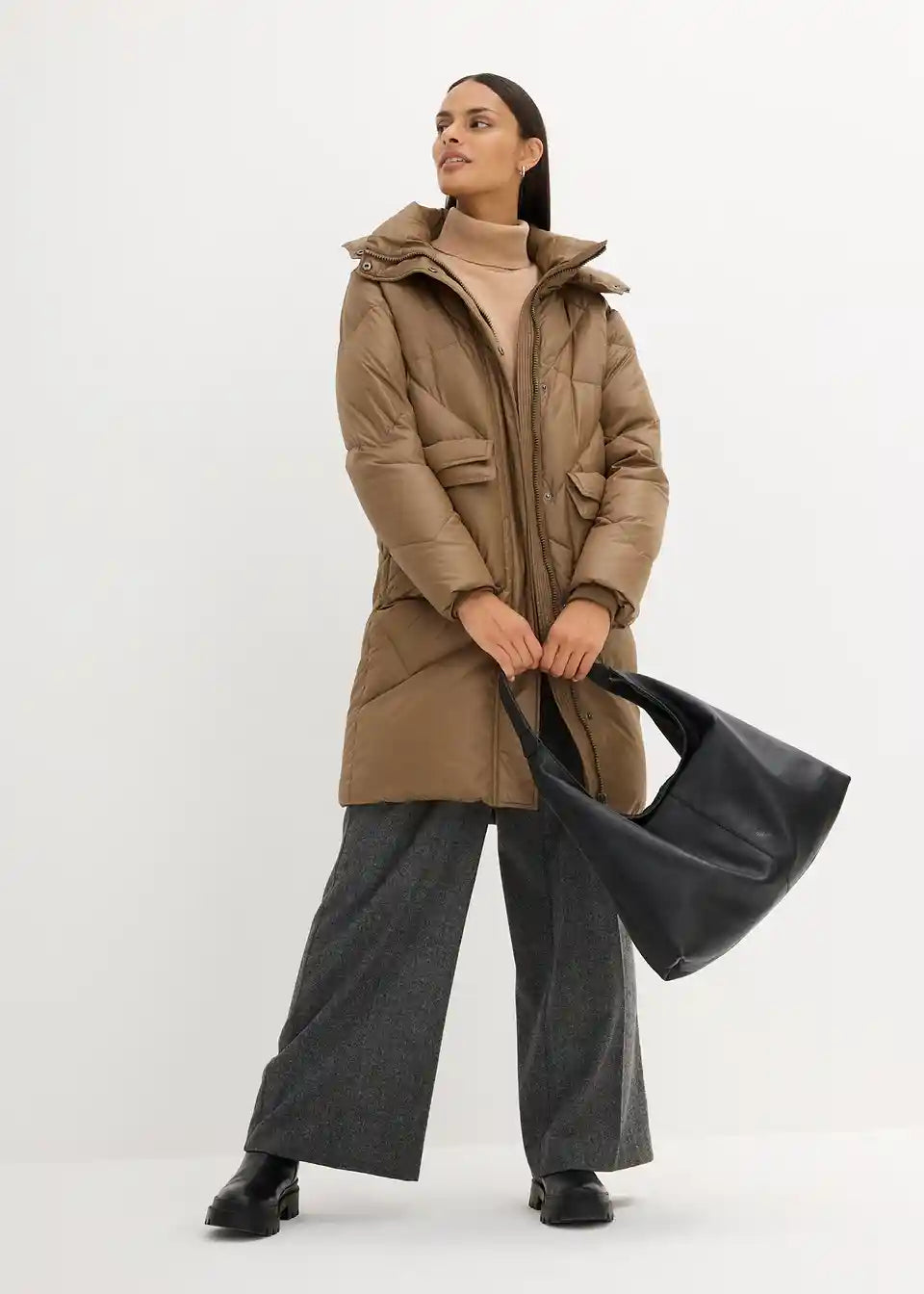 kvalitetna jakna premium kvalitete: pravo perje, moderan uzorak štepova, vodoodbojna završna obrada i odvojiva kapuljača