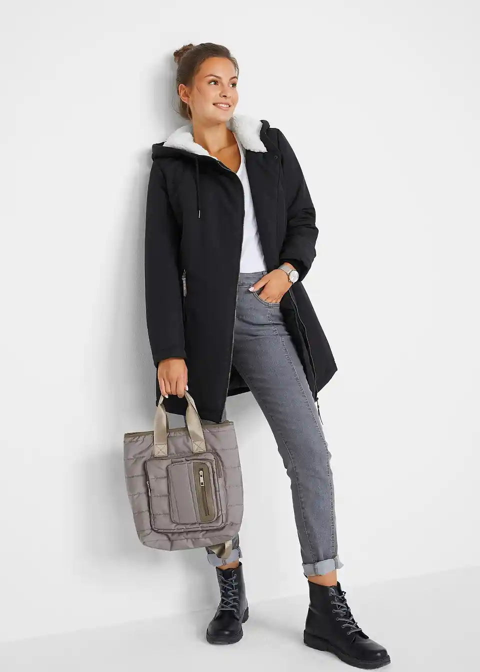Jakna s Teddy krznom i kapuljačom, podstavljena