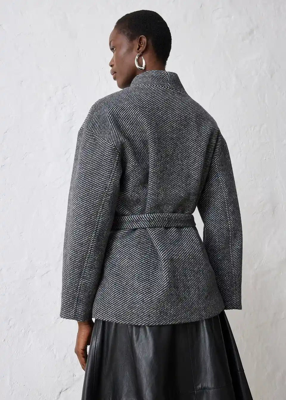 model je visok 1,78 m i nosi veličinu 36.