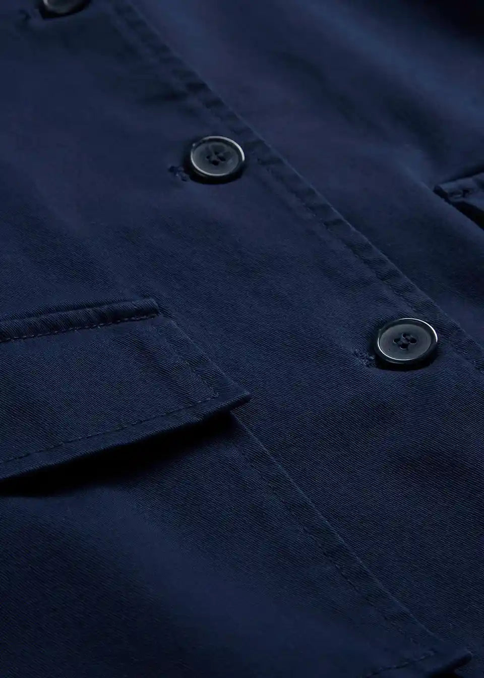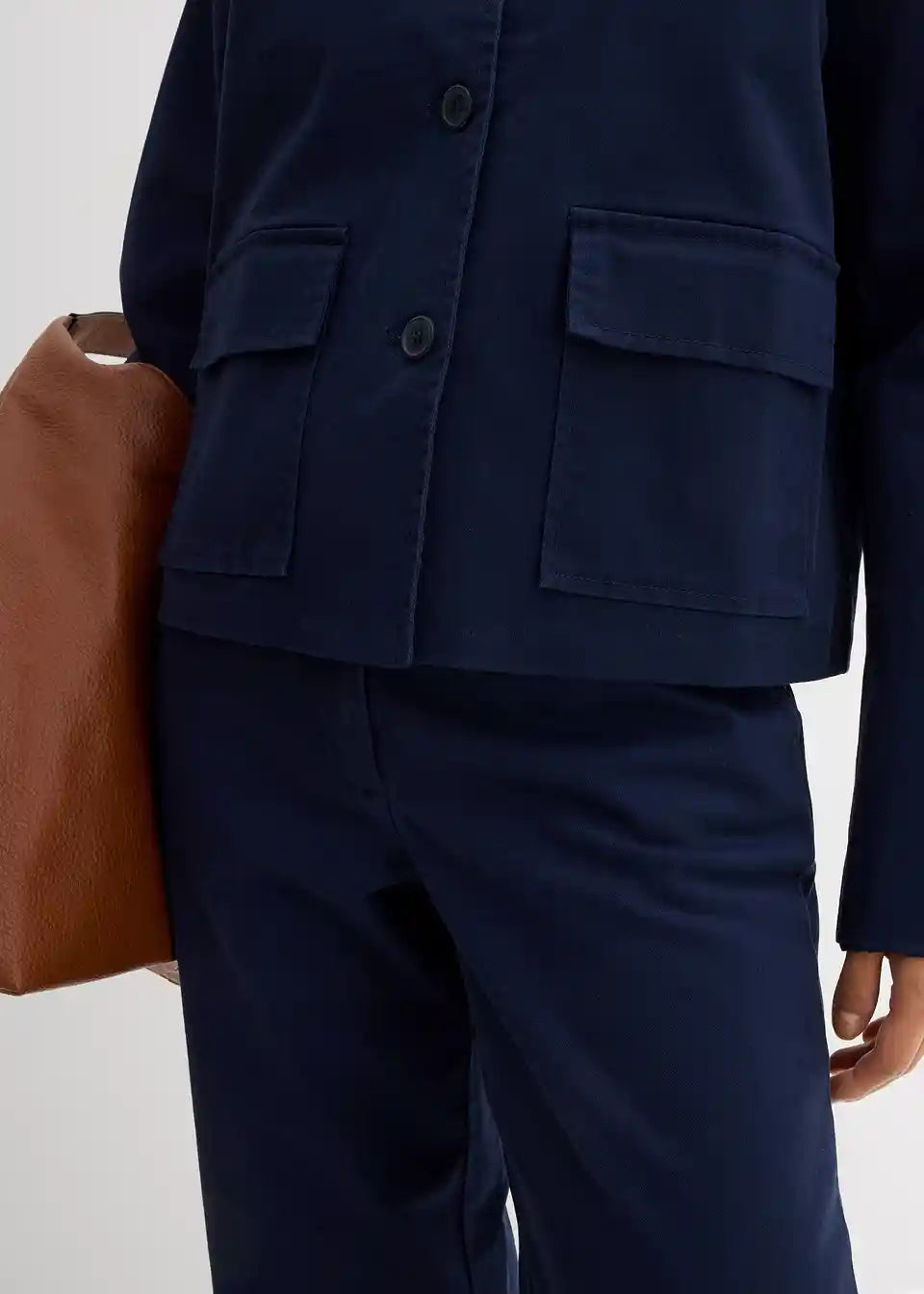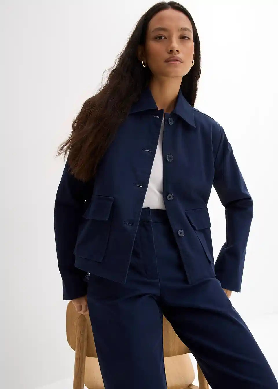Kutijasta prijelazna jakna s raširenim ovratnikom, našivenim džepovima i gumbima u odgovarajućoj boji
