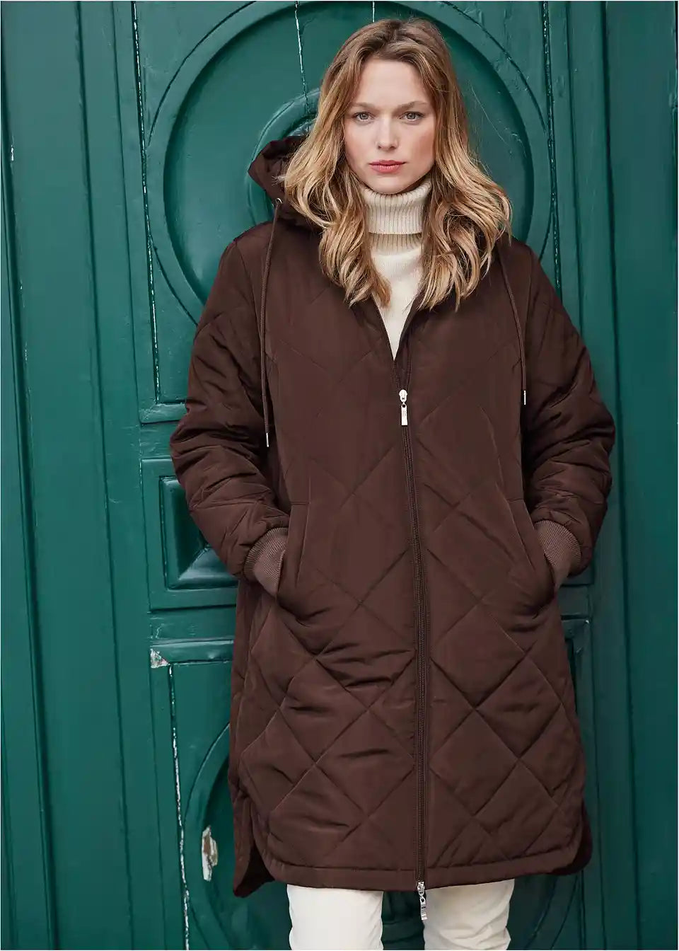 Kratki kaput s kapuljačom i prošivima