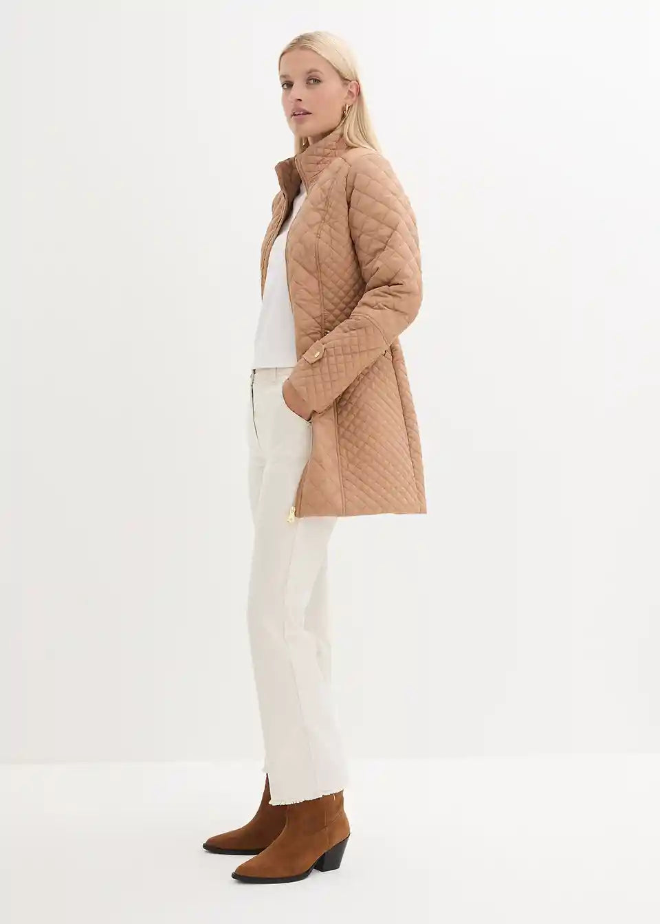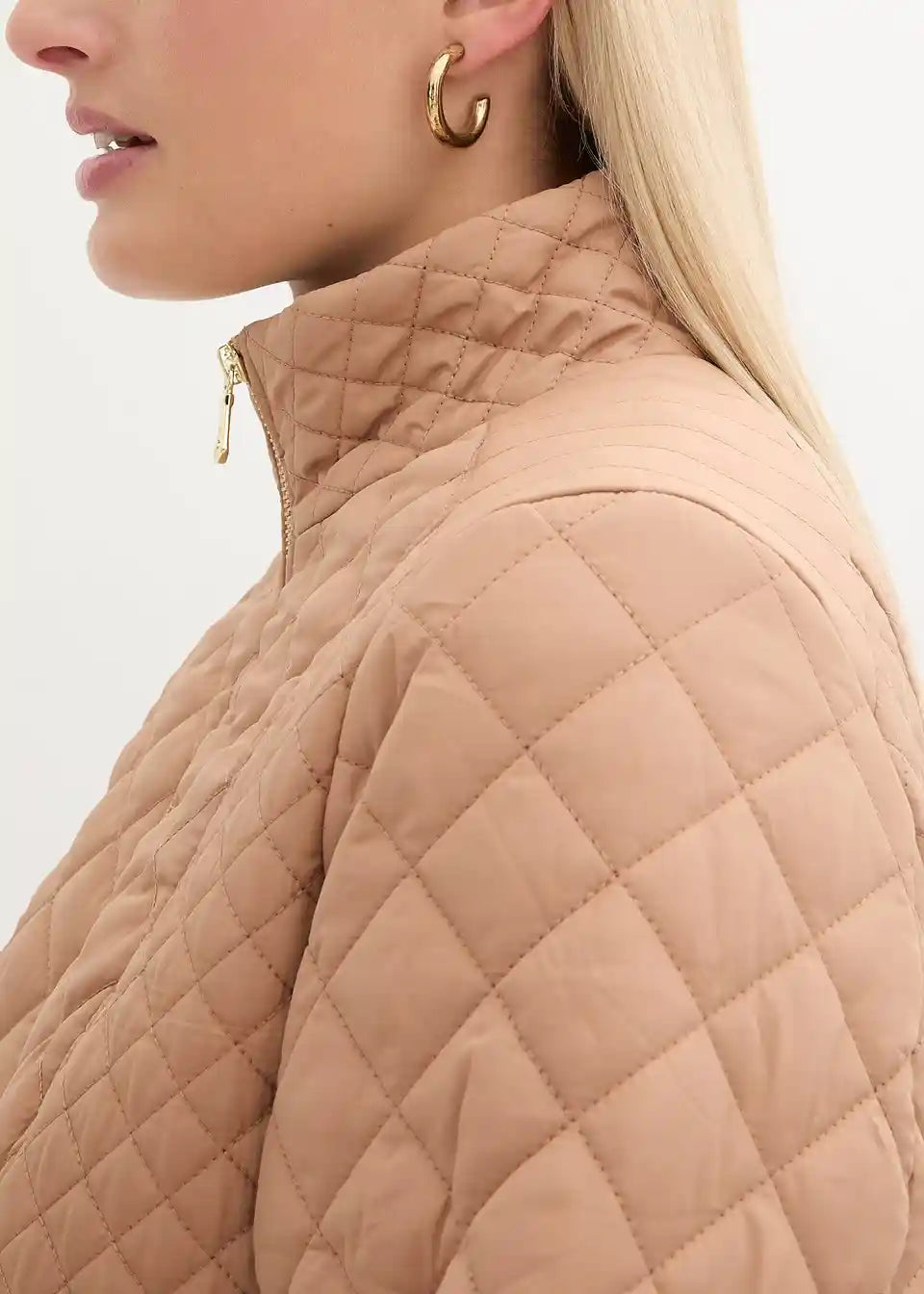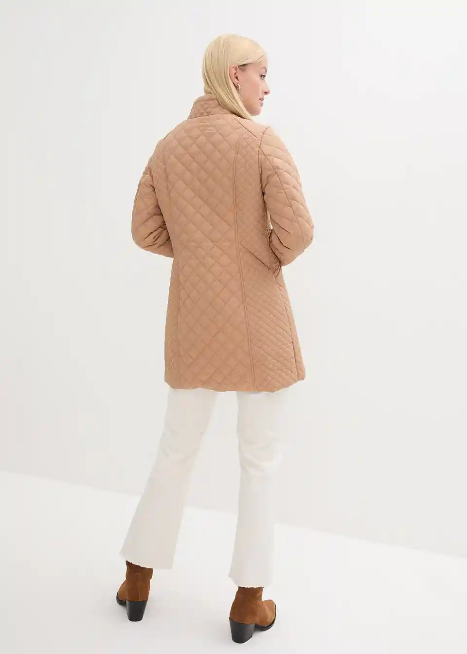 Elegantan kratki prošiveni kaput sa stojećim ovratnikom