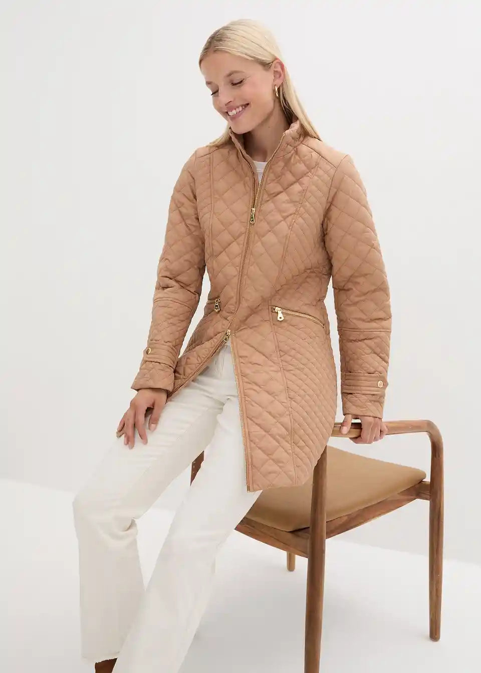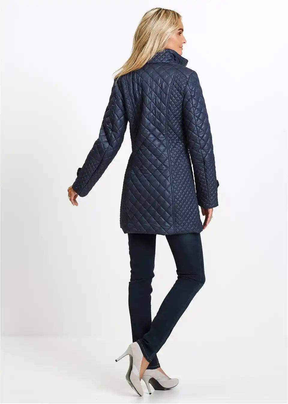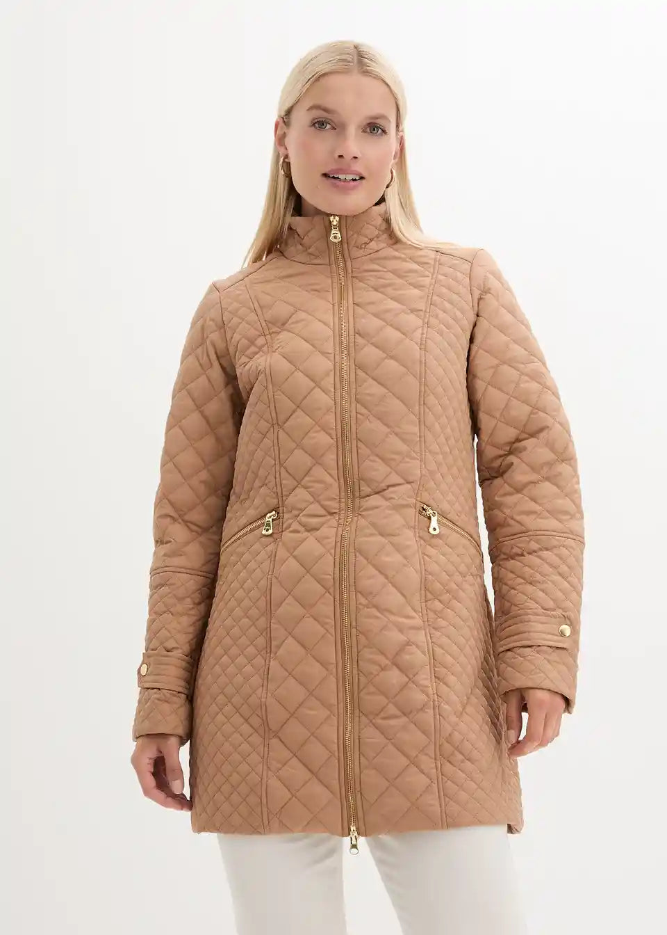 Elegantan kratki prošiveni kaput sa stojećim ovratnikom