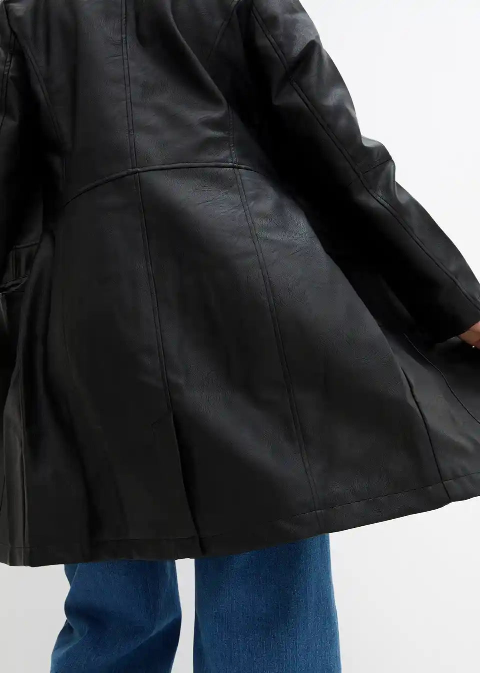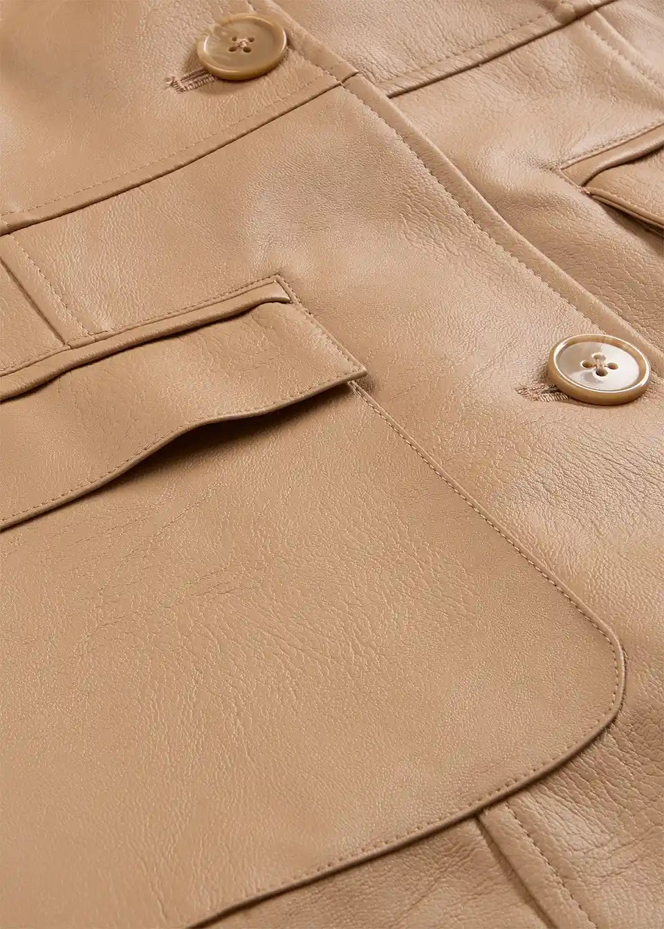 Lagani strukirani kaput od imitacije kože s reverima