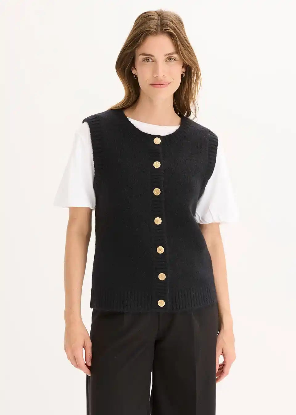 Elegantni pleteni prsluk s visokokvalitetnim gumbima