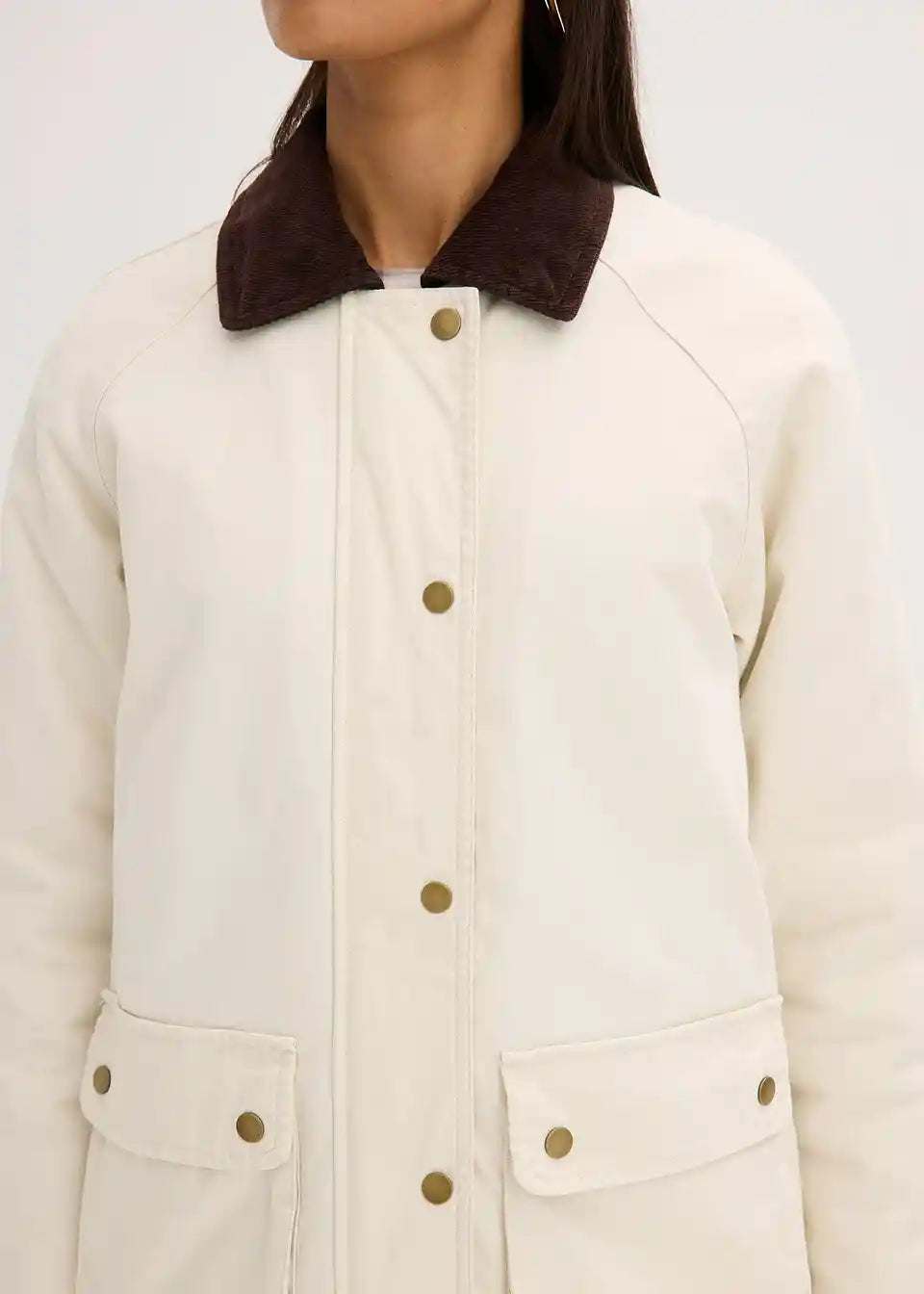 Materijal:gornji materijal: 100% pamuk, podstava i vatirana podstava: 100% poliester, ovratnik: 68% pamuk, 30% pamuk (reciklirani), 2% elastan