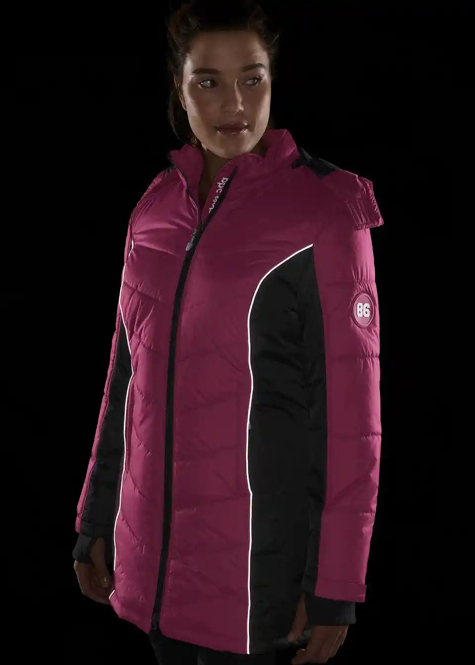 Prošiveni kaput koji naglašava figuru iz aktualne kolekcije bpc modni je osnovni komad za vjetrovito i kišovito vrijeme. Kaput, prikladan za svakodnevno nošenje, vodoodbojan je (vodeni stup 3000 mm), otporan na vjetar i prozračan, s praktičnim detaljima kao što su 2-smjerni patentni zatvarač, kapuljača, džep za mobitel te unutarnji džep s funkcijom za kabel. Kontrastne bočne strane i ukras na lijevom rukavu dodaju modne naglaske.