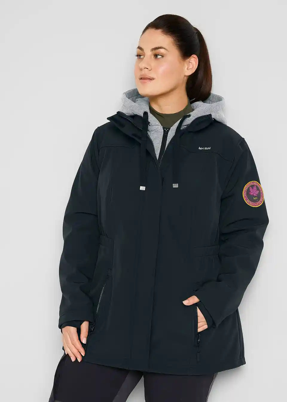 Sve žene koje se vole kretati na otvorenom brzo će zavoljeti ovu Softshell dugu jaknu u 2-u-1 izgledu. Funkcionalna Softshell jakna podstavljena je umetkom od pamuka i zatvara se dvosmjernim patentnim zatvaračem. Mekani materijal od pamuka i dodatni elastični umetak u području struka osiguravaju vrlo ugodan osjećaj nošenja. Softshell jakna je otporna na vjetar, vodoodbojna te prozračna i intenzivno brušena iznutra. Praktični detalji poput otvora za palac i dva prednja džepa s patentnim zatvaračem čine jaknu iz bpc kolekcije nezaobilaznim odjevnim predmetom za svakodnevni život.