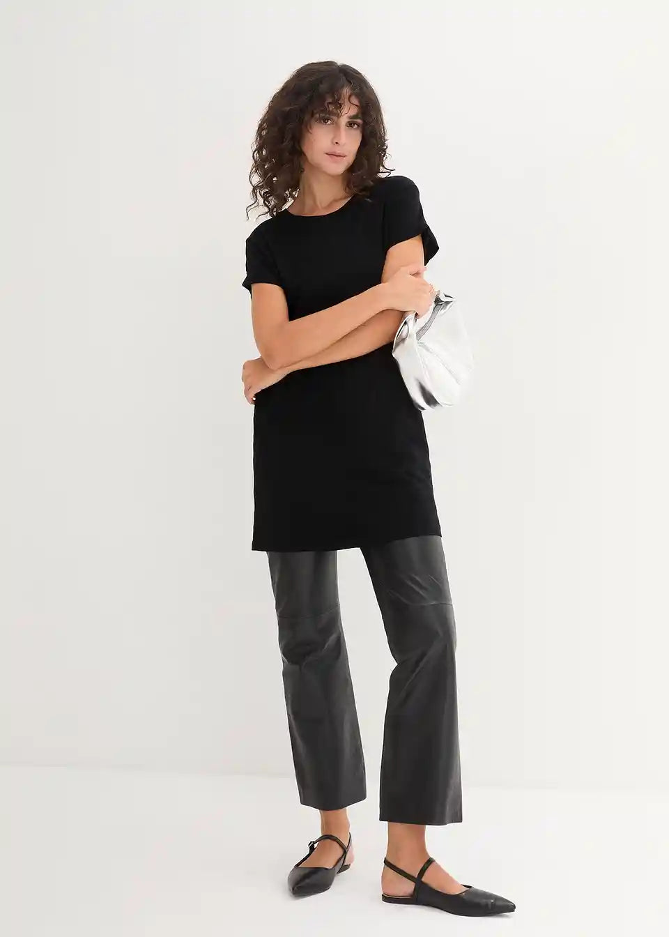 Ova odlična Boxy-Longshirt marke bpc prikladna je za kreiranje raznih ležernih outfita. Okrugli izrez izrađen je od finog rebrastog materijala, a kratki rukavi dolaze s preklopljenim rubovima. Duži kroj ležerno prati figuru. Boxy-Majica izgleda odlično u kombinaciji s tajicama ili uskim hlačama.