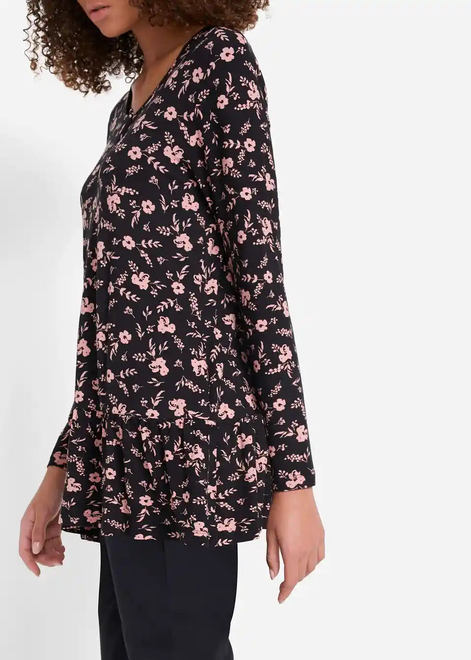 Moderna tunika-košulja s volanom na rubu i bočnim džepovima, rukavi 7/8 duljine
