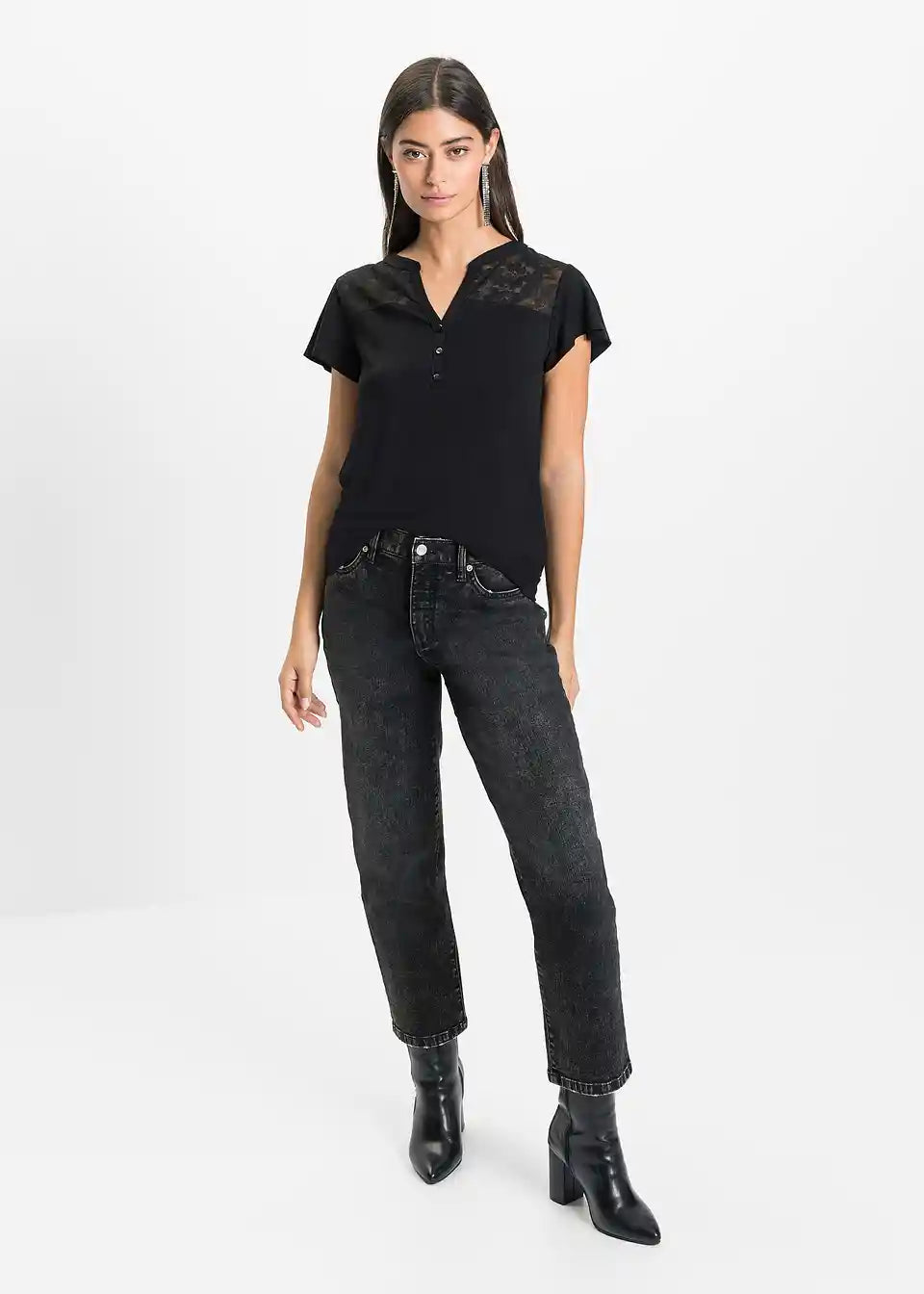 Moderna majica brenda BODYFLIRT. Majica je izrađena s čipkom na ramenima. Duljina u veličini 36/38 cca 64 cm.